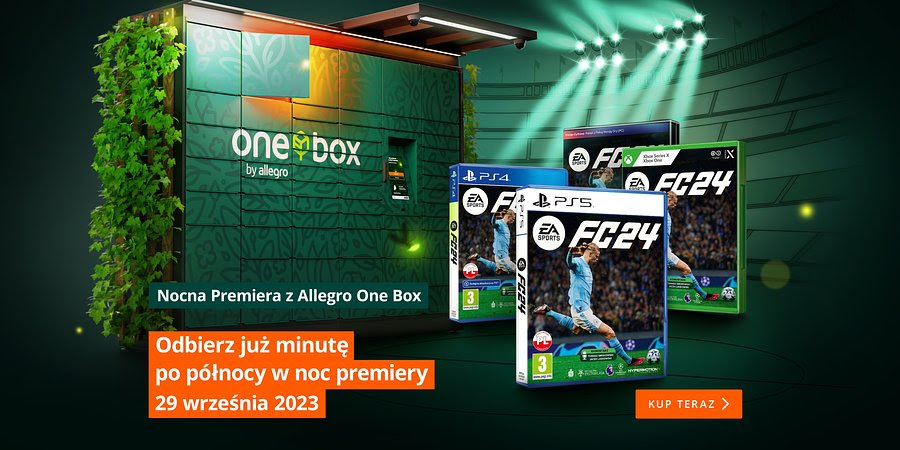 Nocne Premiery to specjalna akcja promocyjna, która umożliwia klientom Allegro szybszy dostęp do wyczekiwanych przez nich produktów. Bez konieczności czekania na otwarcie sklepów czy kuriera w ciągu dnia. Dla osób, które z pewnością nie mogą doczekać się pierwszego gwizdka na wirtualnym boisku EA Sports FC 24, Allegro przygotowało specjalną przedsprzedaż w ramach akcji Nocne Promocje. Gry zakupione w dniach 11-24 września z dostawą do automatów paczkowych Allegro One Box będą gotowe do odbioru już minutę po północy w noc premiery produkcji z 28 na 29 września.