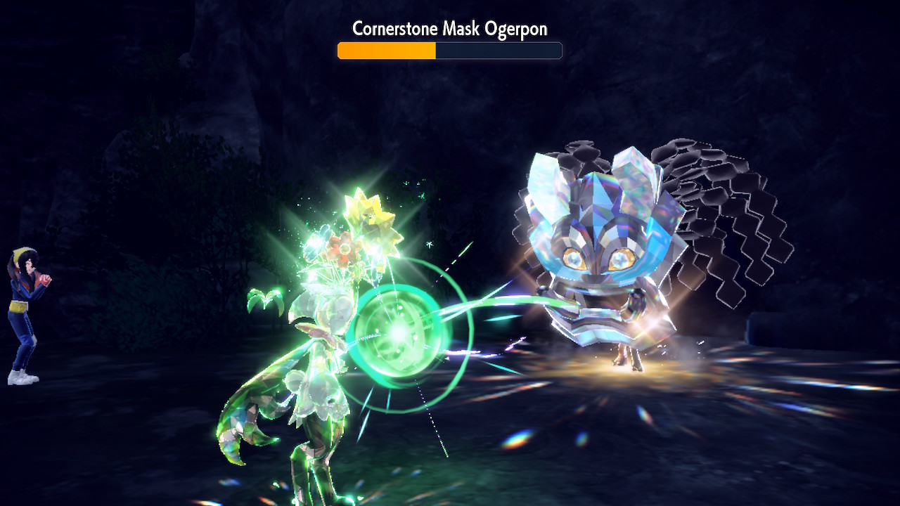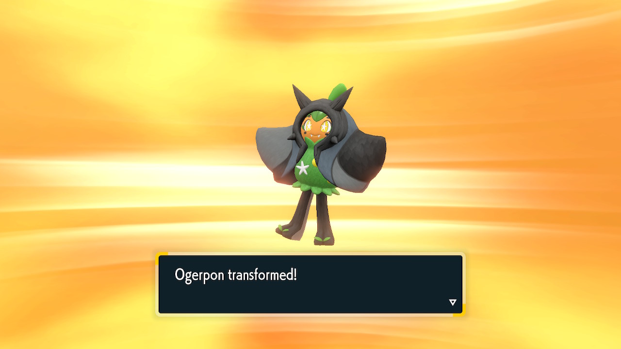 Tak więc trafiamy na Kitakami w okresie festiwalu, w którym świętowane jest zwycięstwo trójki Pokemonów — obrońców wioski, nad złym ogrem. Na miejscu poznajemy nowych przyjaciół i napotkamy wspomnianego Ogra. Jak się domyślacie okazuje się on być Pokemonem — Ogreponem. Okazuje się, że to było wszystko na odwrót, to Ogrepon uratował mieszkańców przed złymi Pokemonami, ale z jakiejś przyczyny nikomu nie możemy o tym powiedzieć. Również przewidywalnie powraca trójka agresorów, a my wkraczamy do akcji, żeby uratować sytuację. Pod względem fabularnym było to tak pasjonujące jak 7-godzinne grzybobranie, bo tyle trwa mniej więcej główny wątek fabularny dodatku. Absolutnie największym pozytywem jest to, że Ogrepon dołącza w końcu do naszej drużyny. Ma całkiem wyjątkową możliwość założenia jednej z 3 masek i zadawania dzięki temu ognistych, wodnych albo kamiennych obrażeń.