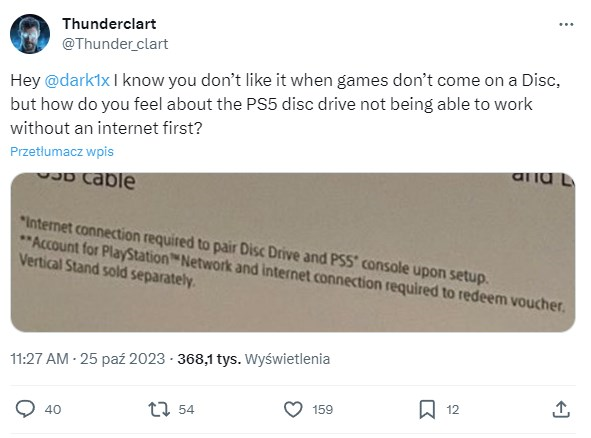 Nietypowe informacje docierają do nas zza oceanu. Według najnowszych przecieków napęd BD do PS5 Slim wymaga podłączenia do internetu.