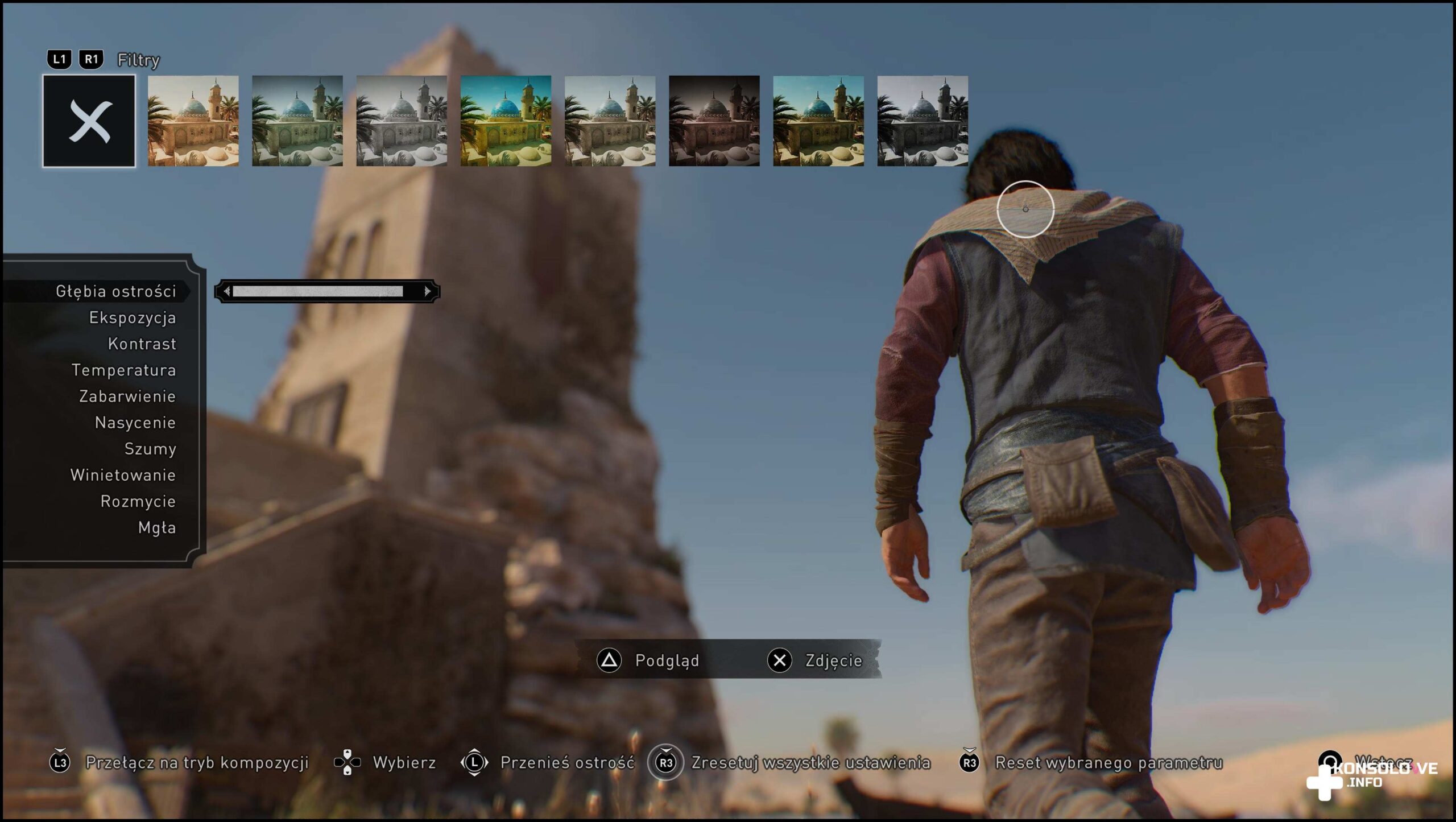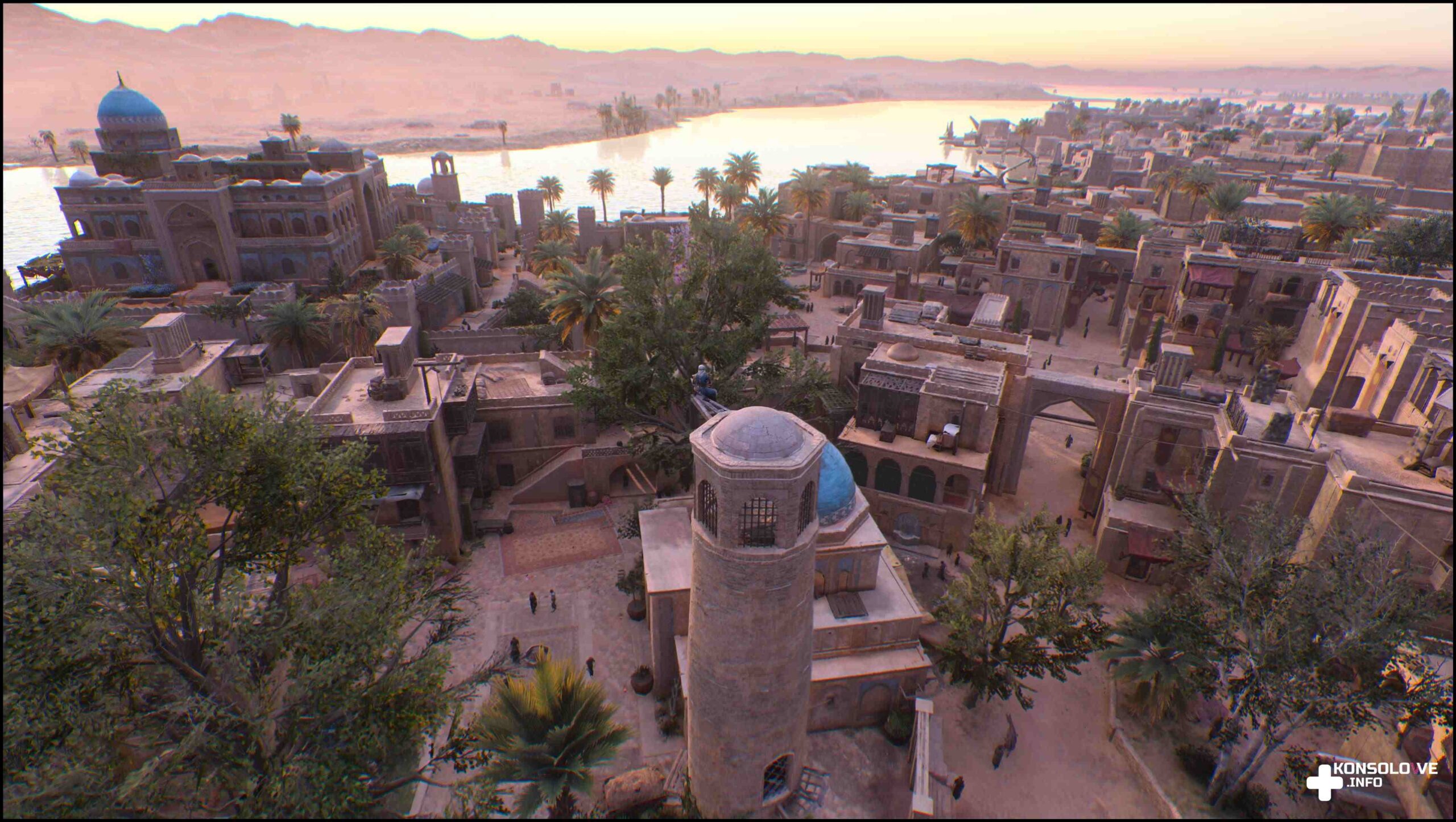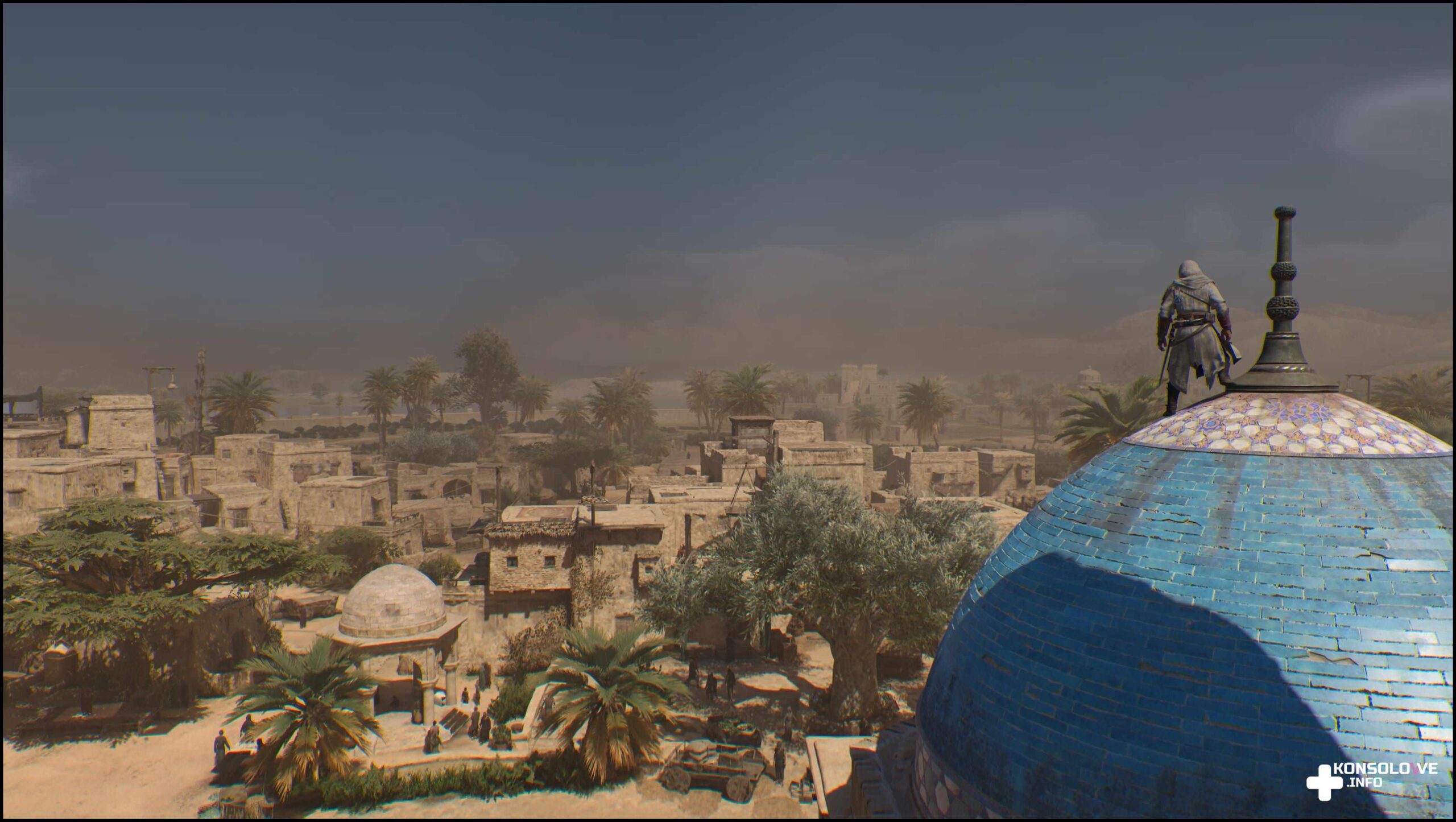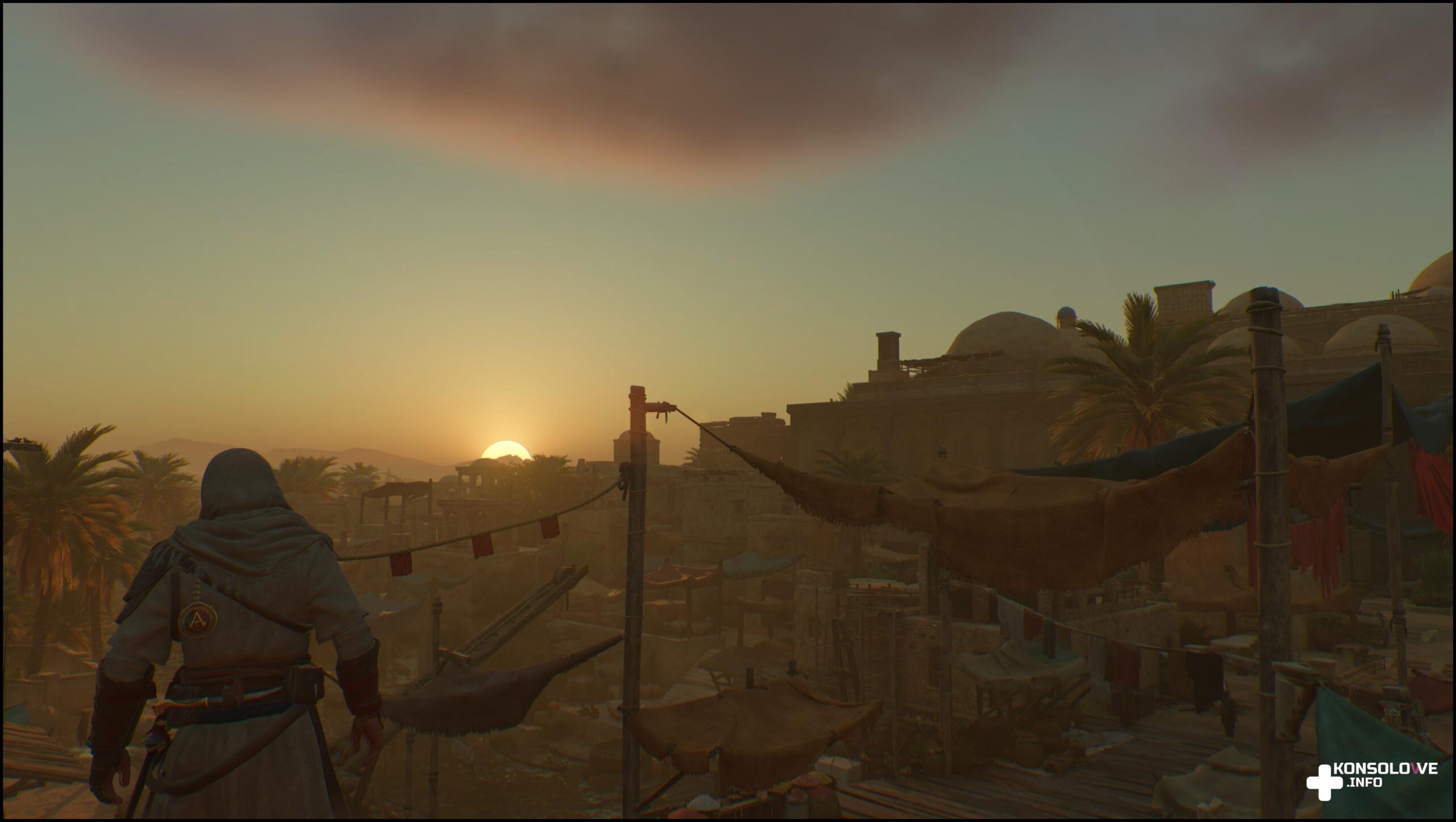Każda odsłona Assassin’s Creed nierzadko zachwycała widokiem i nie inaczej jest w przypadku Mirage. Studio Ubisoft wyraźnie zdaje sobie z tego sprawę i dorzuca Tryb Fotograficzny. Dzięki temu możemy uchwycić naprawdę sporo imponujących rzutów ekranów. Pobawimy się tu ustawieniami ostrości, ekspozycji, winiety, czy nałożymy specjalne filtry. Warto tu się jeszcze na chwilę zatrzymać. Możemy bowiem w menu ustawień wyświetlania wybrać alternatywny filtr. Wtedy będziemy przemierzali świat w kolorystyce znanej z pierwszego Assassin’s Creed. Przyznaję, że zawsze korzystałem z tej modyfikacji podczas moich pobytów i wynik jest zdecydowanie inny od tego, jak gra się prezentuje bez filtra. Spodobało mi się także udźwiękowienie. Przemierzając ulice Bagdadu, możemy natknąć się na muzyka. Możemy mu zapłacić – oczywiście sztonem – aby zaczął grać na gitarze i śpiewać coś po arabsku. Zresztą nawet z minaretów możemy słyszeć nawoływania wiernych do modlitwy, a przyśpiewek nie brakuje też w utworach skomponowanych specjalnie do gry. Dodajmy jeszcze do tego możliwość włączenia (świetnie brzmiącego) arabskiego dubbingu i polskich napisów, a otrzymamy niezwykle immersyjną grę.