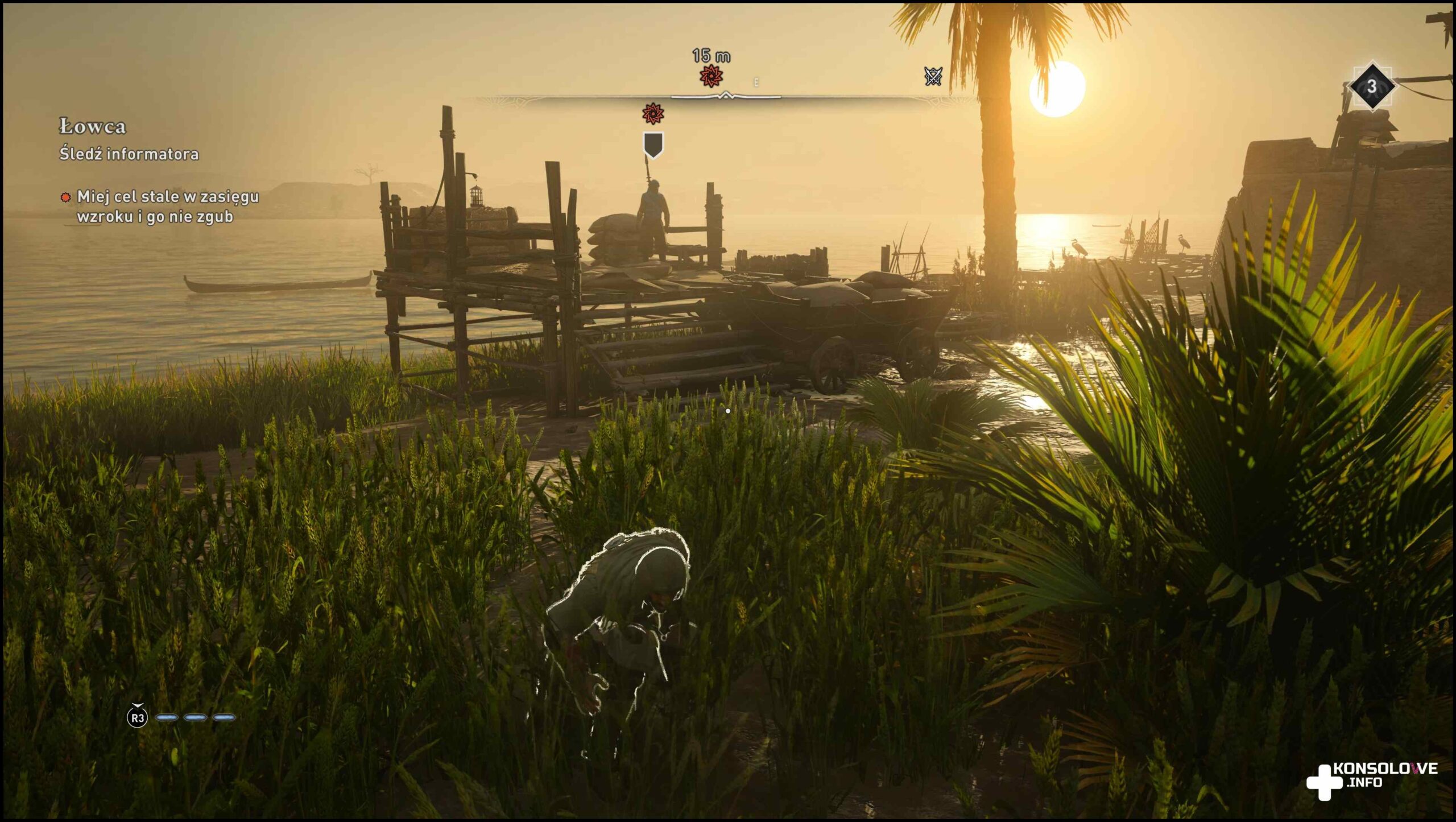 Assassin’s Creed: Mirage to oczywiście trzecioosobowa gra akcji, więc nie brakuje w niej okazji do starć. Z przyjemnością stwierdzam jednak, że twórcy wyraźnie zachęcają do skradania się, o czym niedługo dowiecie się więcej. Sama główna opowieść (której ukończenie zajmuje niecałe 20 godzin) to bynajmniej nie koniec przygód Basima. Nasz Ukryty może bowiem chociażby szukać mnóstwa punktów synchronizacji. Po wejściu na te wieże i wciśnięciu przycisku synchronizacji (trójkąta), poznamy okoliczne interesujące miejsca oraz odblokujemy szybką podróż.
