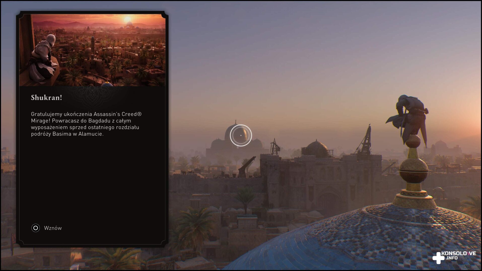 Assassin’s Creed: Mirage miało stanowić powrót do korzeni serii i tak rzeczywiście jest. Skradanie się jest bardzo przyjemne, a noże do rzucania są świetną bronią dystansową. Ruchy z poprzednich odsłon w nowej edycji prezentują się świetnie – podobnie zresztą jak filtr do obrazu rodem z pierwszej części Zakonu. Walka jest prosta, ale wymagająca i nie odznacza się na szczęście takim chaosem, co najnowsze przygody asasynów. Z przygodami Basima wiązałem ogromne nadzieje. Na szczęście Ubisoftowi udało się spełnić większość z nich. Ten tytuł ma oczywiście pewne. Jednakże mimo nich jest wart bardzo wysokiej oceny. Mirage to bez wątpienia krok w dobrą stronę i mam nadzieję, że Ubisoft wie już, co powinno znajdować się w grze o asasynach. Życzę sobie i Wam więcej trzecioosobowych skradanek. Będziemy Was oczywiście informować o kolejnych takich grach na bieżąco. Pamiętajcie więc, aby regularnie do nas zaglądać. Co Wy sądzicie o Mirage? Zgadzacie się z moją oceną? Dajcie nam znać w komentarzach.
