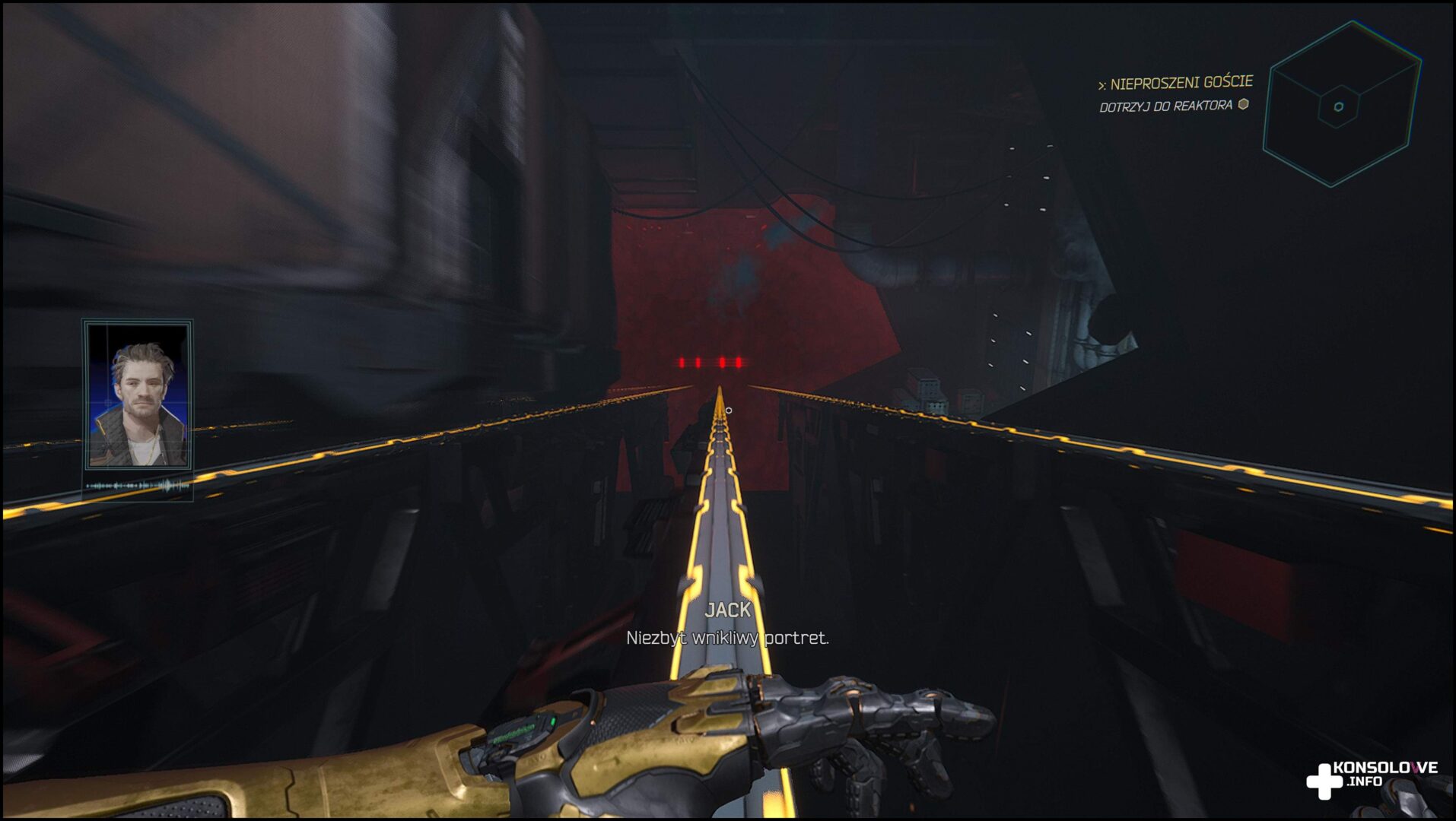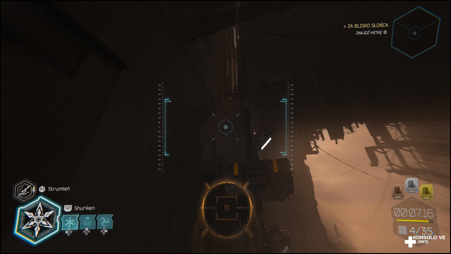 Oczywiście nie musimy koniecznie wstawić umiejętności zgodnie z bonusowymi wytycznymi – ja jednak zawsze do tego dążyłem. Należy też zaznaczyć, ze nowe zdolności wykupujemy w specjalnych urządzeniach, które musimy znaleźć na poziomach. Odpowiedni sprzęt znajduje się również w naszym centrum dowodzenia, w którym to możemy pogadać z naszymi kompanami. Poziomy warto zwiedzać też z jeszcze jednego powodu – oprócz wspomnianych wcześniej fioletowych znajdziek (zwiększających moc naszej pamięci głównej, a tym samym dostępne punkty instalacji ulepszeń) możemy natknąć się na audiologii, czy przedmioty przypominające nam, jak wyglądał dawny świat. Znajdziemy także alternatywne skórki dla naszej katany.
