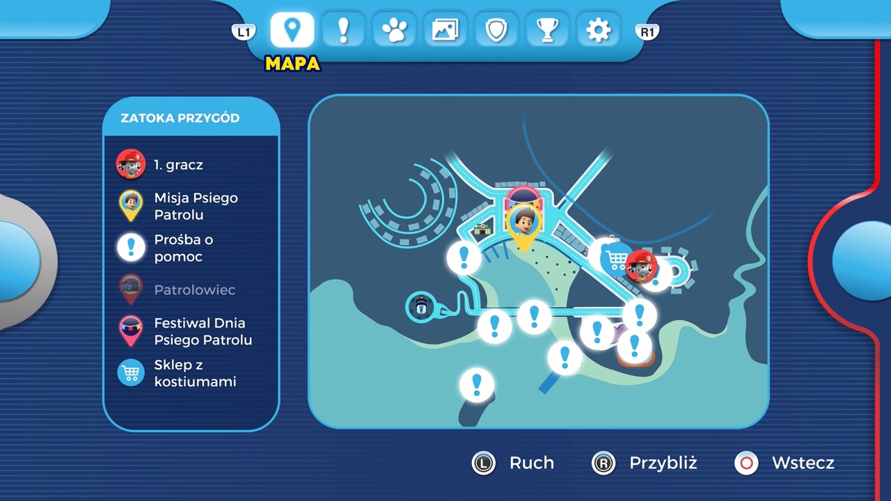 Dla każdego psiaka na mapie znaleźć możemy także ukrytą odznakę. Warto ich poszukać, często ukryto je dość skrzętnie. Miejskie tereny Zatoki Przygód, to nie jedyny teren, jaki odwiedzimy. Czeka nas także wyprawa w góry, do dżungli, a nawet na średniowieczny zamek.