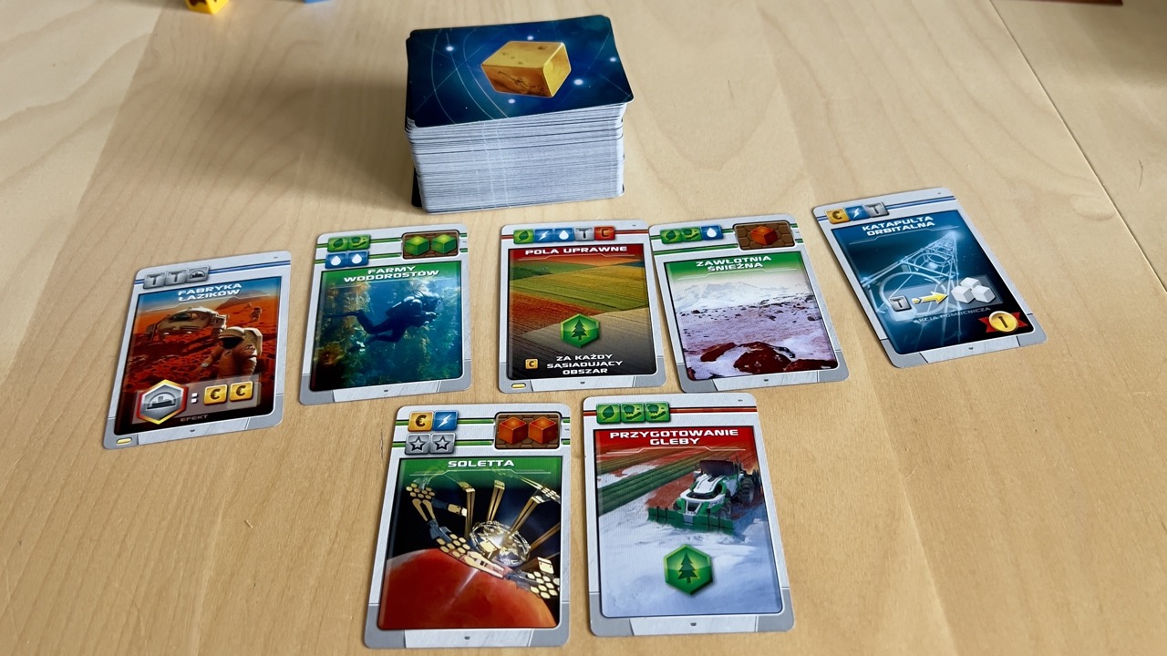 Jak widać, karty są dość proste. Większość też nie ma na sobie żadnego tekstu i opierają się w głównej mierze na ikonach. Może na pierwszy rzut oka będą one nie do końca jasne, ale po chwili wszystko wejdzie nam w krew. A weterani Terraformacji zrozumieją je raczej bez żadnych dodatkowych instrukcji.