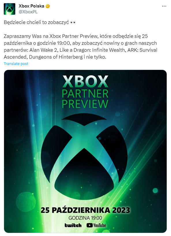 Na pewno dowiemy się tam więcej o czterech nadchodzących premierach: Like a Dragon: Infinite Wealth, Alan Wake 2, Dungeons of Hinterberg oraz Ark: Survival Ascended. Zespół Xboxa przygotował jednak ciut więcej.