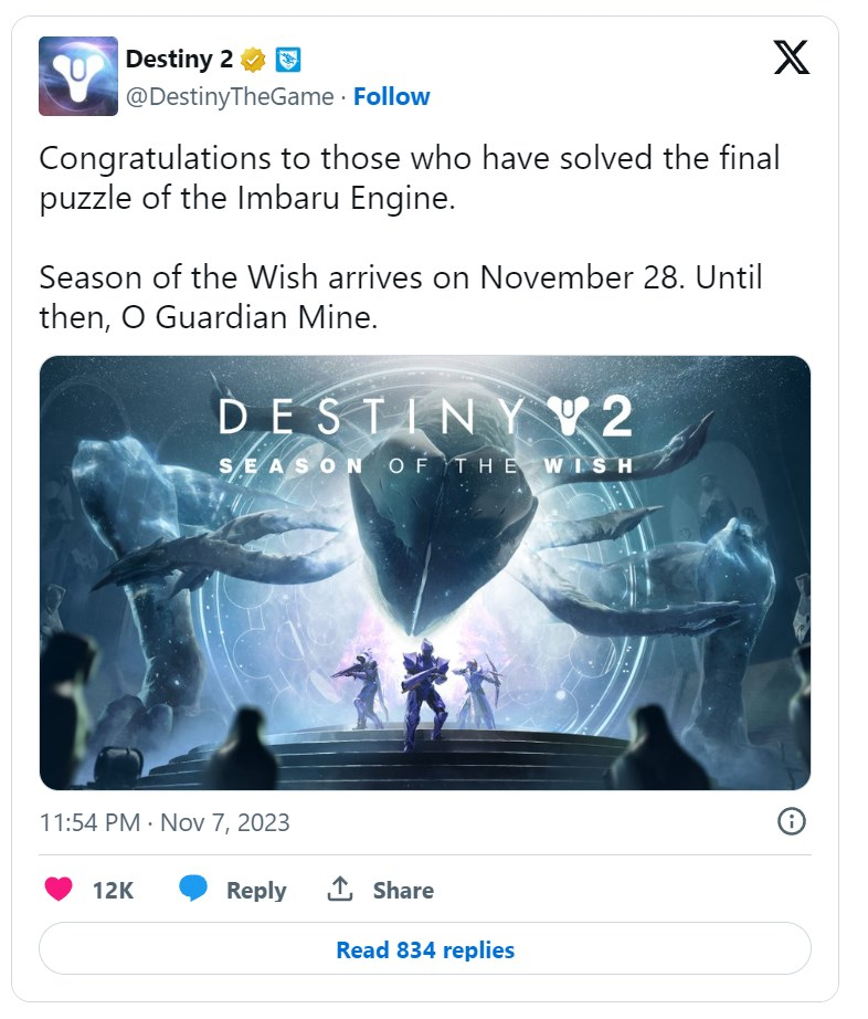 Bungie w mediach społecznościowych zaprezentowało grafikę promującą Destiny 2: Season of the Wish. Teoretycznie ostatni sezon w historii gry.