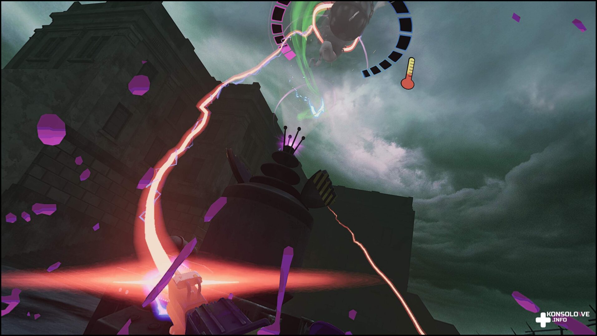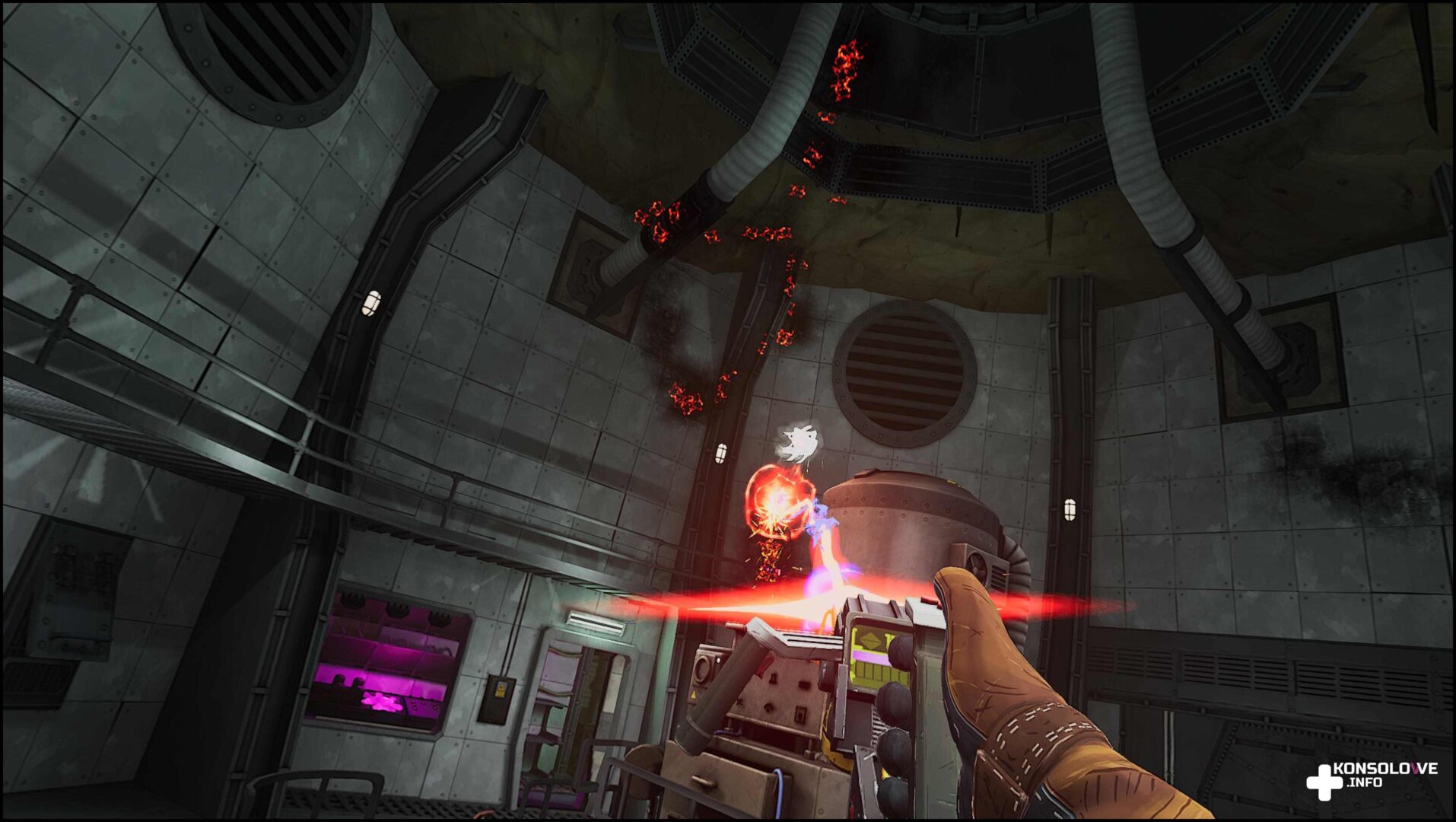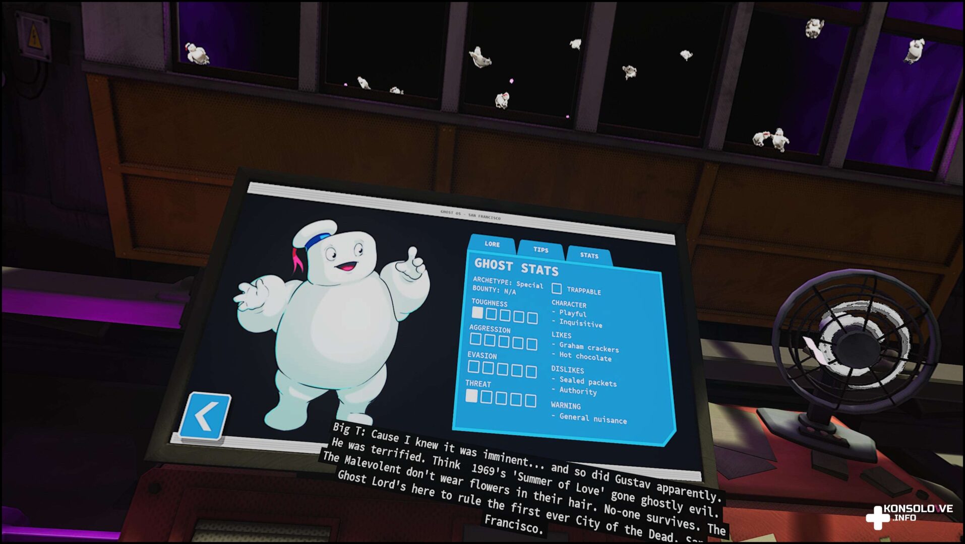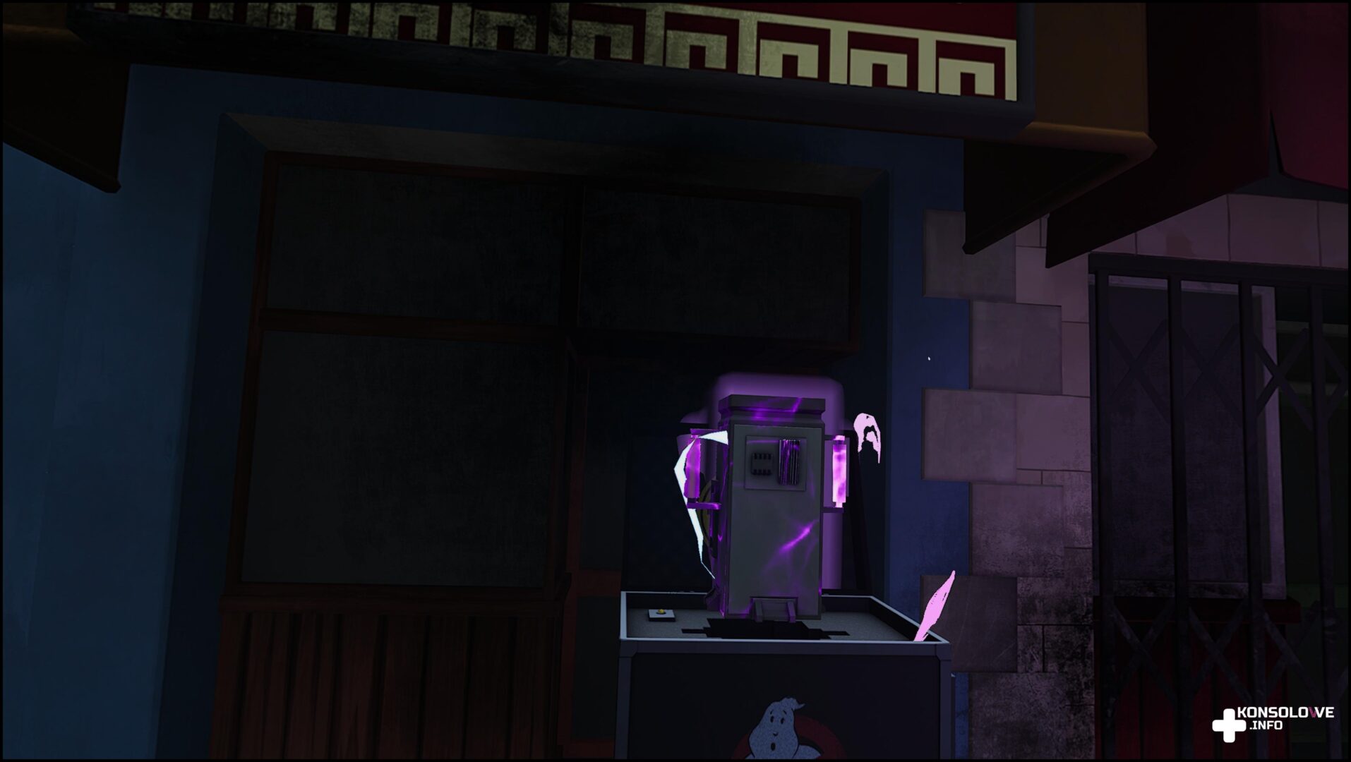 Przy lewym biodrze (aczkolwiek możemy zamienić wiszący przy nim sprzęt miejscami z PKE) znajdziemy przenośną pułapkę na duchy. Po rzuceniu jej, będzie czekała, aby złapać byt astralny (oczywiście pod warunkiem, że będzie w jej polu działania i spętamy go odpowiednio). Do tego służy naturalnie charakterystyczna broń każdego Pogromcy Duchów – działko wystrzeliwujące specjalny strumie wiążący ducha. Możemy z niego korzystać, trzymając je w jednej ręce, aczkolwiek zdecydowanie lepsze efekty osiągniemy, przytrzymując je drugą ręką – strumień nie rozchodzi się wtedy tak bardzo. Przyznaję, że świetnie bawiłem się, kierując strumieniem w przeciwną stronę niż ta, w którą chciał udać się chwytany duch. Dzięki temu mogłem mu uniemożliwiać ucieczkę. Jestem zachwycony tym, jak studiu nDreams udało się oddać poczucie bycia Pogromcą Duchów. To naprawdę wspaniałe doświadczenie i kiedy tylko będziecie mieli okazję sprawdzić tę grę, skorzystajcie z tej możliwości bez wahania!