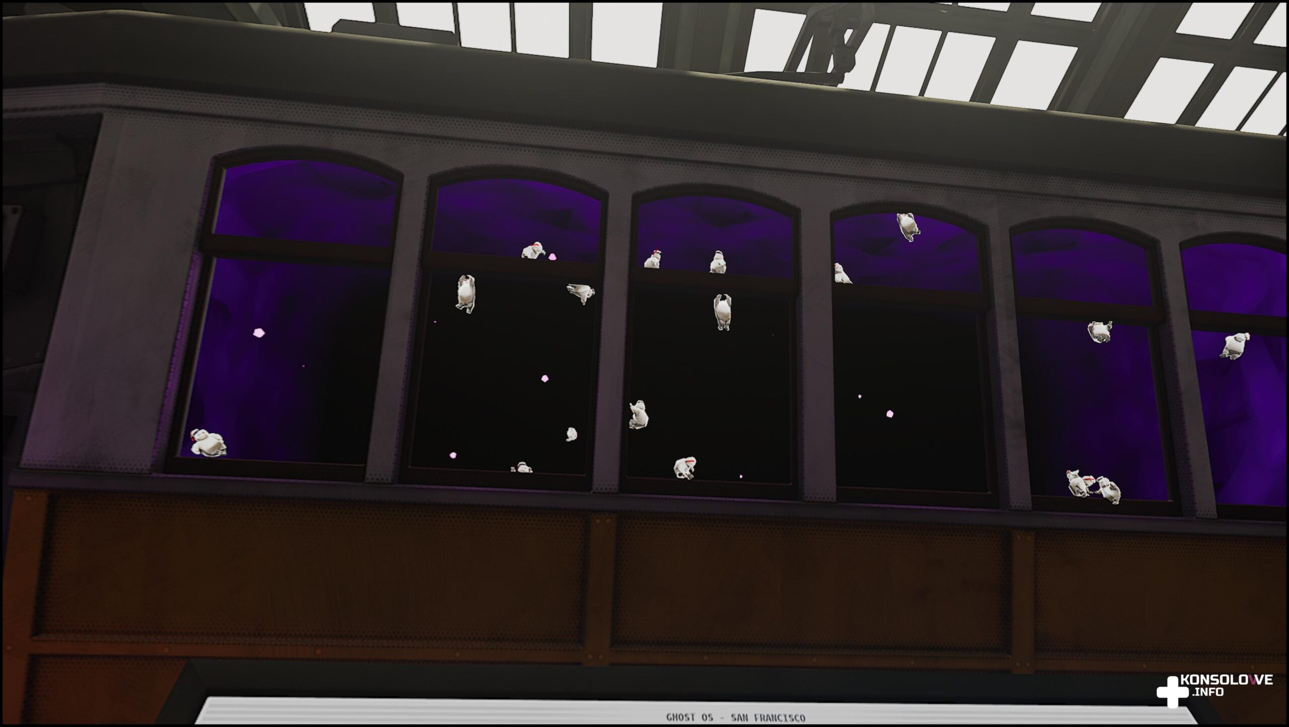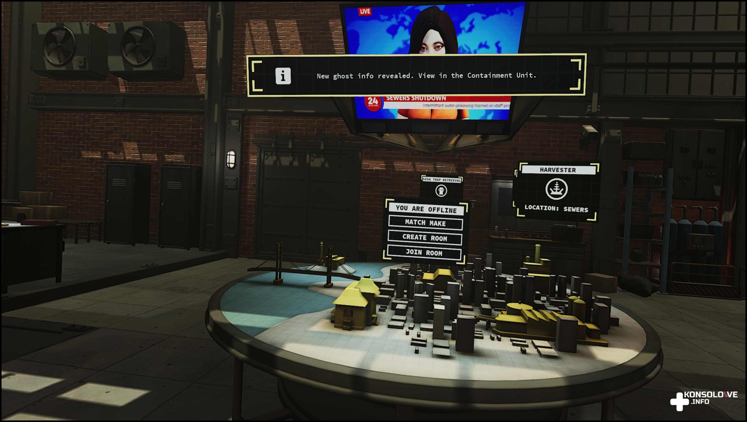 W centrum dowodzenia znajdziemy też szafę, która pozwoli nam zakładać alternatywne stroje dla każdej z postaci, w jakie możemy się wcielić. Wpływa to wyłącznie na kwestie kosmetyczne – nie ma tu poziomów postaci ani gracza i ulepszenia dotyczą wyłącznie sprzętu. Nawet jeżeli nie zależy Wam na wyglądzie bohatera, to warto pokręcić się po centrum dowodzenia. W innym komputerze możemy przejrzeć informacje na temat duchów, na jakie się natknęliśmy. Z kolei nieopodal samochodu znajdziemy inny komputer, informujący nas o liczbie znalezionych oraz wszystkich duchów, jak również dostępnych zadaniach składających się na podstawową kampanię. Liczy ona nieco ponad 40 zleceń, a jedno trwa około 10 minut. Jest to więc idealna gra zarówno na dłuższe, jak i krótsze sesje z goglami. W centralnym punkcie naszej bazy znajdziemy mapę, na której widzimy dostępne zadania oraz potwierdzamy wybór zlecenia. Więcej na temat typów misji pisałem oczywiście wcześniej.