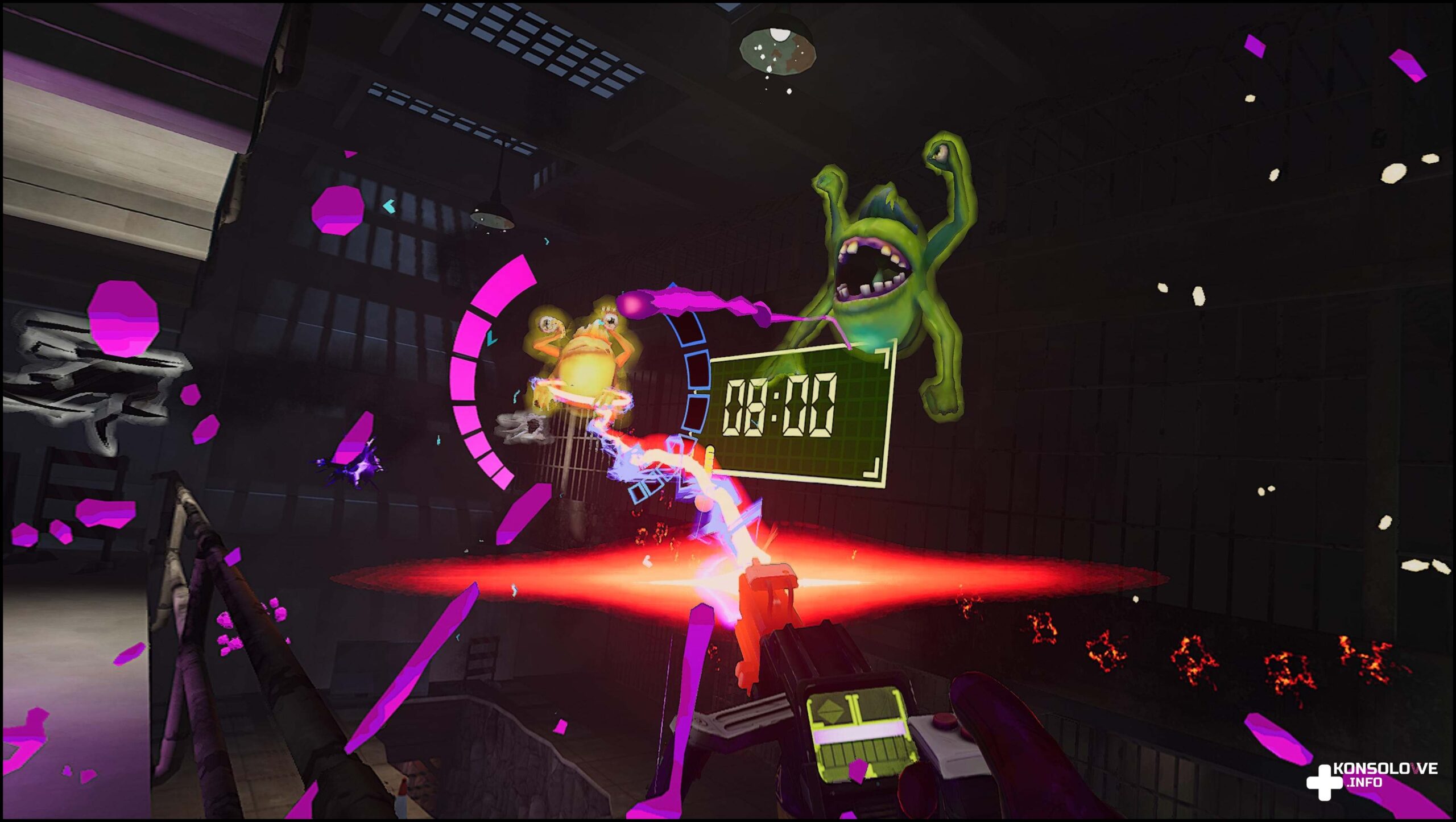 Ostatnim typem misji jest mój ulubiony – egzorcyzm. Zaczynamy taką misję od zeskanowania jednego z podestów za pomocą PKE. Po wykonaniu tej czynności, na wyświetlaczu PKE znajdziemy radar informujący nas o przybliżonej lokacji opętanego obiektu. Po znalezieniu go, chwytamy przedmiot i wracamy z nim na podest. Wtedy kręcimy korbą, by przytrzymać ten obiekt w jego miejscu, a następnie pociągamy wajchę, co spowoduje napływ duchów do naszego miejsca. Po ich zwalczeniu (oraz oczywiście złapaniu do naszej pułapki) aktywujemy kolejne postumenty, a ostatecznie walczymy z bossem, którego nierzadko będziemy musieli pozbawić kończyn. Najpierw osłabimy go, a potem weźmiemy na celownik kończyny, które będziemy szarpali w odpowiednie strony i naciskać przycisk X, kiedy zobaczymy stosowny komunikat. Rozgrywkę w tym trybie (na poziomie Extreme) możecie zresztą zobaczyć na moim fragmencie gry, który wstawiłem wcześniej w tej recenzji.
