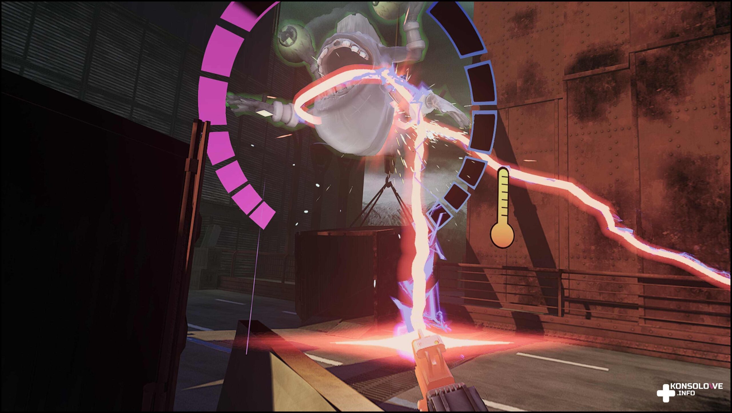 Przy lewym biodrze (aczkolwiek możemy zamienić wiszący przy nim sprzęt miejscami z PKE) znajdziemy przenośną pułapkę na duchy. Po rzuceniu jej, będzie czekała, aby złapać byt astralny (oczywiście pod warunkiem, że będzie w jej polu działania i spętamy go odpowiednio). Do tego służy naturalnie charakterystyczna broń każdego Pogromcy Duchów – działko wystrzeliwujące specjalny strumie wiążący ducha. Możemy z niego korzystać, trzymając je w jednej ręce, aczkolwiek zdecydowanie lepsze efekty osiągniemy, przytrzymując je drugą ręką – strumień nie rozchodzi się wtedy tak bardzo. Przyznaję, że świetnie bawiłem się, kierując strumieniem w przeciwną stronę niż ta, w którą chciał udać się chwytany duch. Dzięki temu mogłem mu uniemożliwiać ucieczkę. Jestem zachwycony tym, jak studiu nDreams udało się oddać poczucie bycia Pogromcą Duchów. To naprawdę wspaniałe doświadczenie i kiedy tylko będziecie mieli okazję sprawdzić tę grę, skorzystajcie z tej możliwości bez wahania!