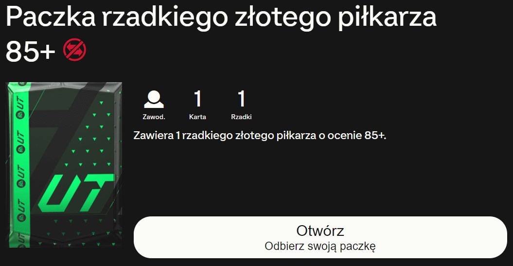 Muszę przyznać, że EA Sports mocno mnie i pewnie nie tylko mnie zaskoczyło. W FC 24 na graczy czekają naprawdę solidne i wartościowe prezenty z okazji wydarzenia Winter Wildcards. Wystarczy tylko zalogować się do gry, aby odebrać paczkę z darmową kartą 85+. Następnie w sklepie czeka paczka za 10 monet, w której znajdziecie 3 karty oraz paczka za 30 monet z 10 kartami.