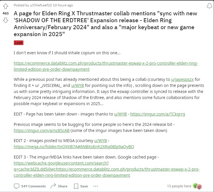 Elden Ring prawdopodobnie dostanie swoją wersję wizualną kontrolera od firmy Thrustmaster. Czy termin premiery pada będzie powiązany z wydaniem DLC?