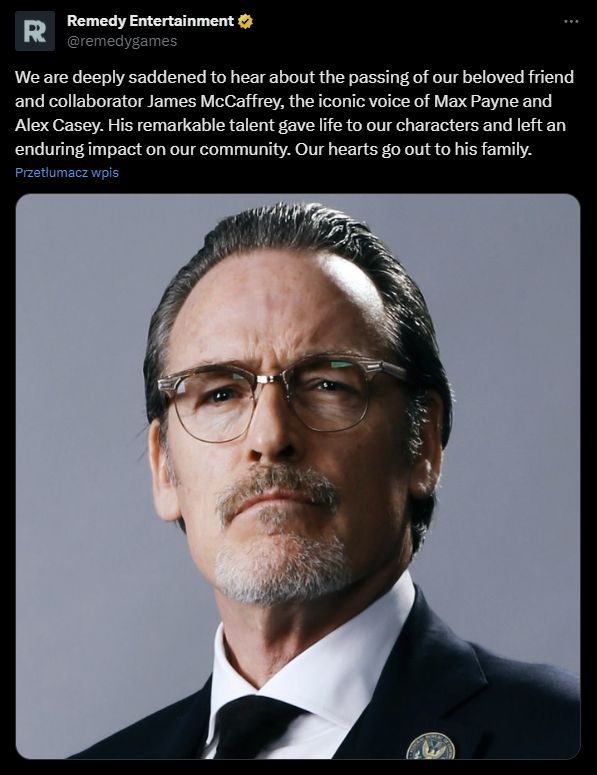 James McCaffrey to aktor dubbingowy, którego głos z pewnością kojarzy niejeden gracz. Niesamowicie sugestywnie współtworzył on klimat między innymi w grach z serii Max Payne. Ostatnio mogliśmy go słyszeć również w roli Alexa Casey’a w kontynuacji losów tytułowego pisarza w Alan Wake 2. Niestety jest to także ostatnia kreacja, w jakiej kiedykolwiek usłyszmy tego aktora. Jak informuje portal TMZ, dziś McCaffrey zmarł w wieku 65 lat. Powodem śmierci jest rak. Swoje kondolencje złożyło wiele osób i studiów – między innymi Remedy Entertainment, z którym aktor bardzo długo współpracował.
