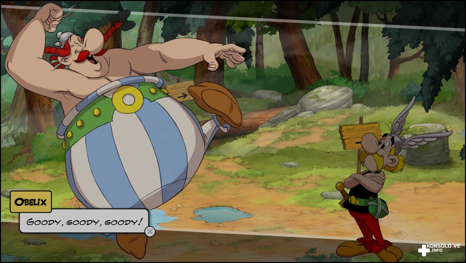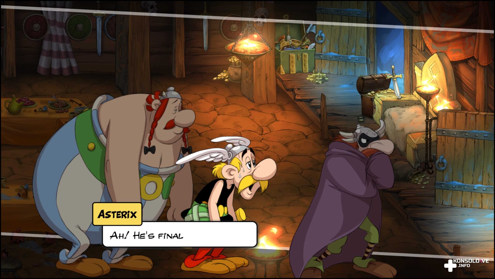 W tym miejscu muszę niestety wspomnieć o pewnym braku konsekwencji. O ile bowiem opis w PS Store zawiera przetłumaczone na język polski nazwy postaci, o tyle w samej grze ich nie uświadczymy. Ponownie mamy niestety do czynienia z brakiem spolszczenia, nawet kinowego. Idealny byłby oczywiście polski dubbing połączony nie ze spolszczeniem, a lokalizacją. Zamiast tego musimy grać po angielsku, co jest w mojej ocenie sporym niedopatrzeniem. O sukcesie serii Asterix & Obelix stanowiło jak dla mnie zawsze umiejętne tłumaczenie dostosowane do naszych realiów. W recenzowanej dziś grze niestety nie doświadczymy takiego luksusu. Tym bardziej szkoda, bo historia jest naprawdę fajnie napisana i może się podobać miłośnikom perypetii Galów. Nie jest wybitna, aczkolwiek z chęcią śledziłem losy dwójki przyjaciół.