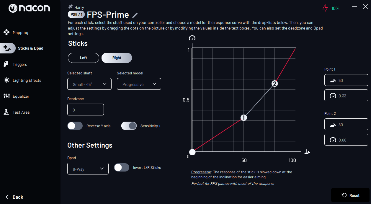 W Nacon Revolution 5 PRO można świetnie ustawić joysticki i spusty. Jako snajper-amator doceniłem wysoki joystick o zadanym przeze mnie profilu pracy — zero martwego pola, mały zakres ruchu na początku i duży przy większym odchyleniu gałki. Oczywiście nie zawsze występuje się w grze właśnie w takiej roli. Kiedy bierzecie do wirtualnych rąk SMG, wystarczy tylko zmienić profil i już czujemy zmianę w działaniu joysticków. Zdecydowanie trzeba pochwalić też osiągi jeśli chodzi o opóźnienie, wynoszące na PS5 tylko 6ms. Czas bezprzewodowej pracy wynosił około 12h.