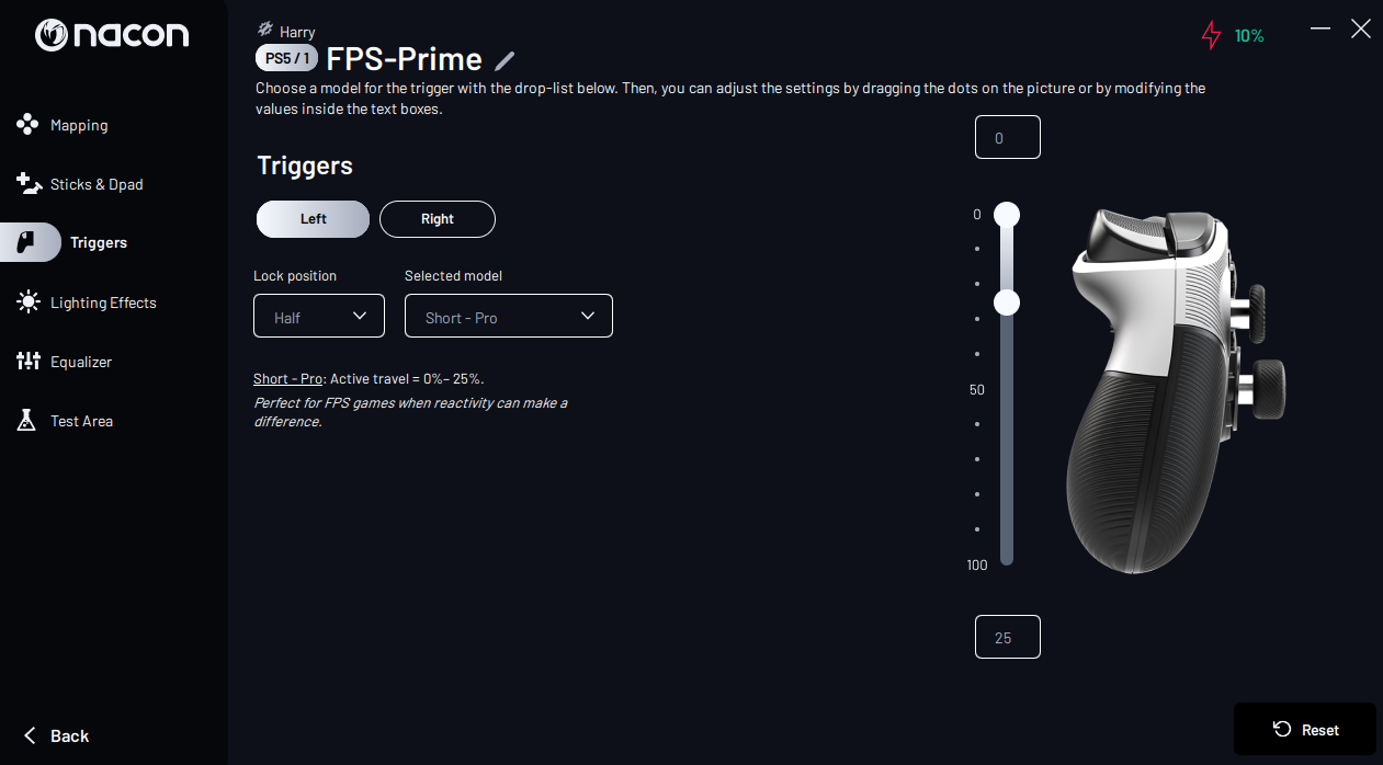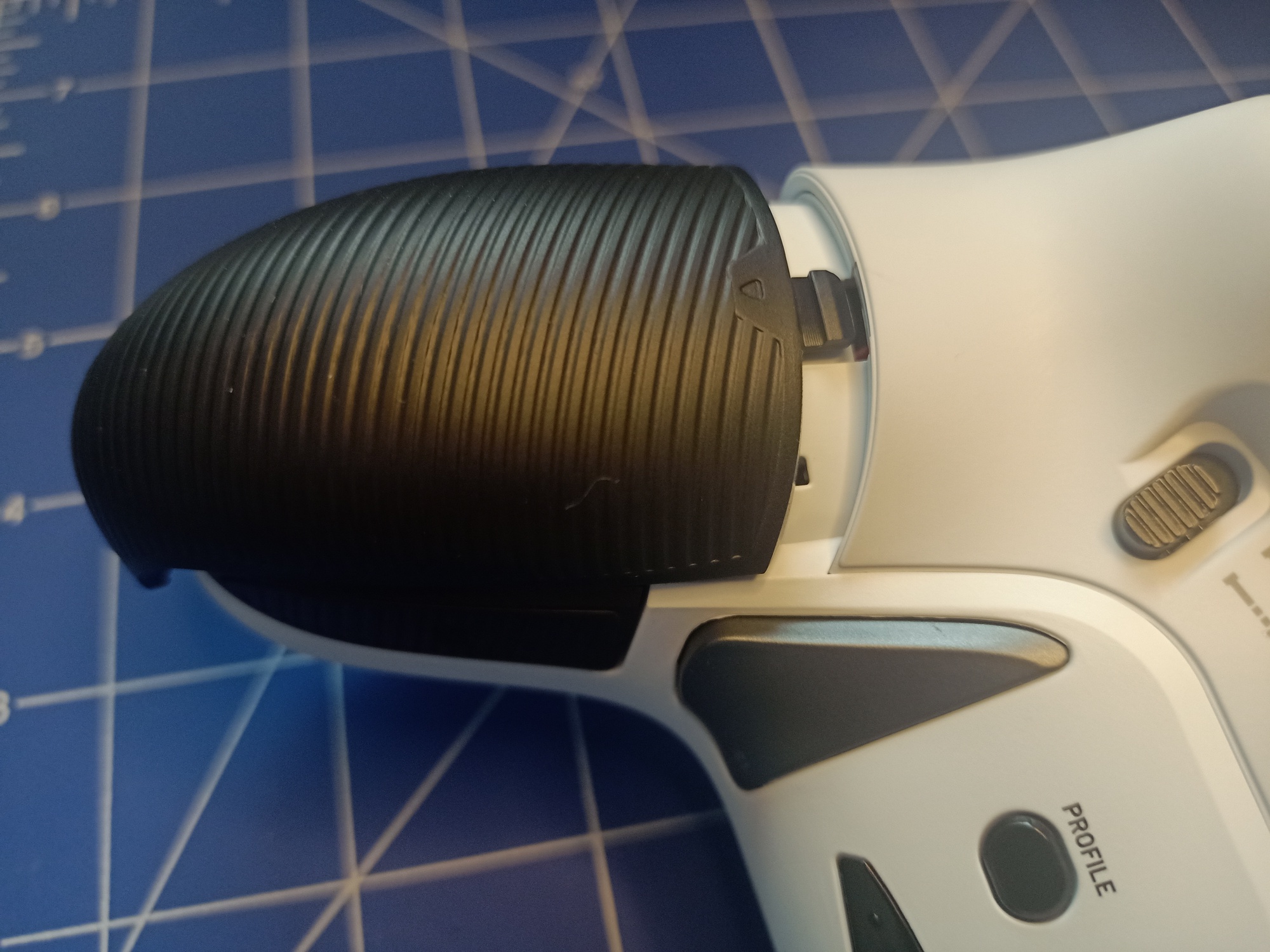 Wspomniałem już o obręczach Joysticków, a wypada jeszcze powiedzieć o blokadach spustów. Podobnie jak obręcze fizycznie ograniczają one zakres pracy komponentów. Innymi słowy, po co tracić czas na dociśnięcie całego triggera, skoro można zrobić to szybciej — krócej? Pamiętajcie jednak, że ograniczenie zakresu pracy trzeba uwzględnić jeszcze w ustawieniach gry, a najlepiej w konkretnym profilu kontrolera. Zrobimy to oczywiście w aplikacji, ale do jej opisu jeszcze przejdę.