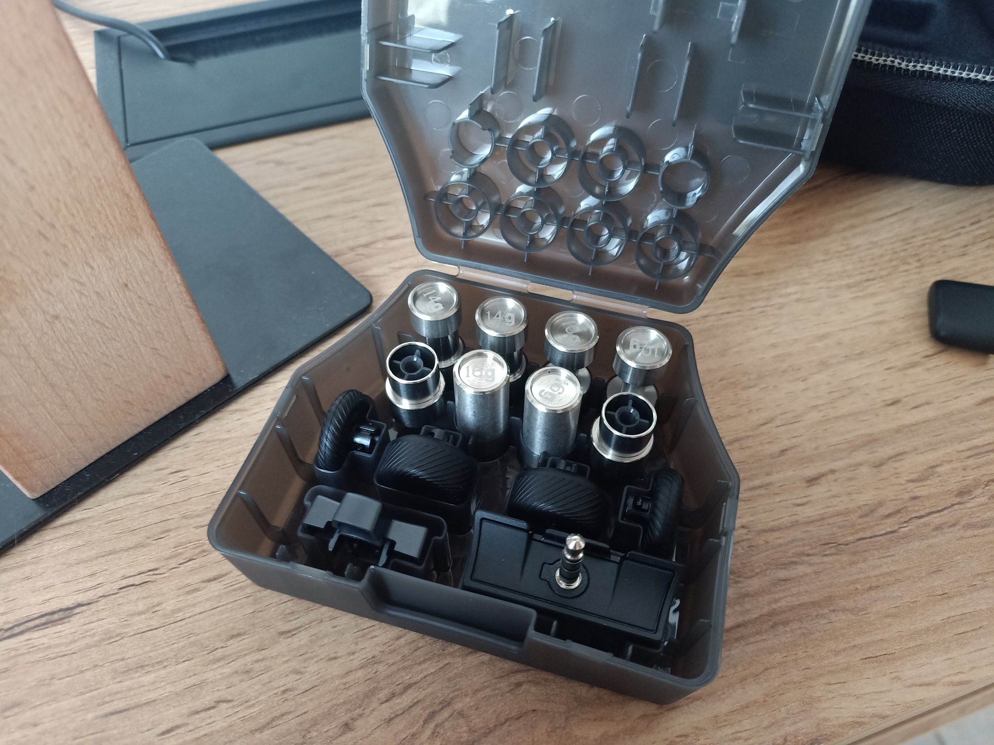 Pozostając w temacie wykonania komponentów, wspomnę od razu o dodatkowych elementach konfiguracyjnych, umieszczonych w schludnym pokrowcu. Przede wszystkim są to główki joysticków: