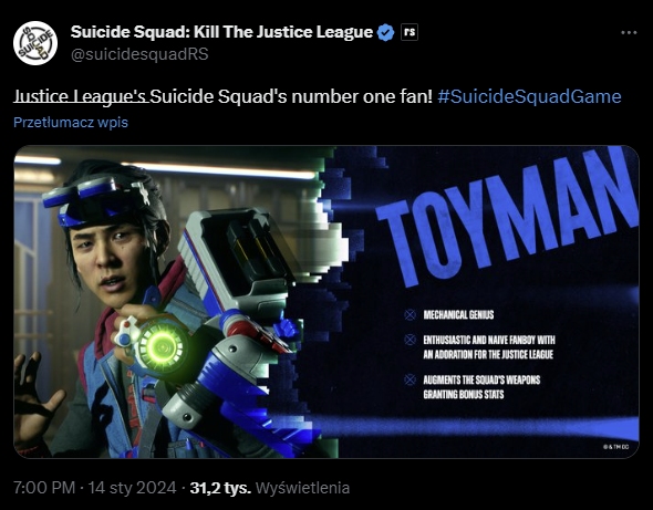 Czekacie na tę grę? Która z początkowo grywalnych postaci (jak na pewno pamiętacie, po premierze będą dodawane kolejne, całkowicie za darmo) będzie Waszą główną? Dajcie nam o tym znać w komentarzach. Polecam też przeczytanie mojego obszernego newsa, w którym zebrałem informacje przekazane przez Rocksteady podczas niedawnej sesji Q&A. Niżej znajdziecie naturalnie odnośnik do tego wpisu.