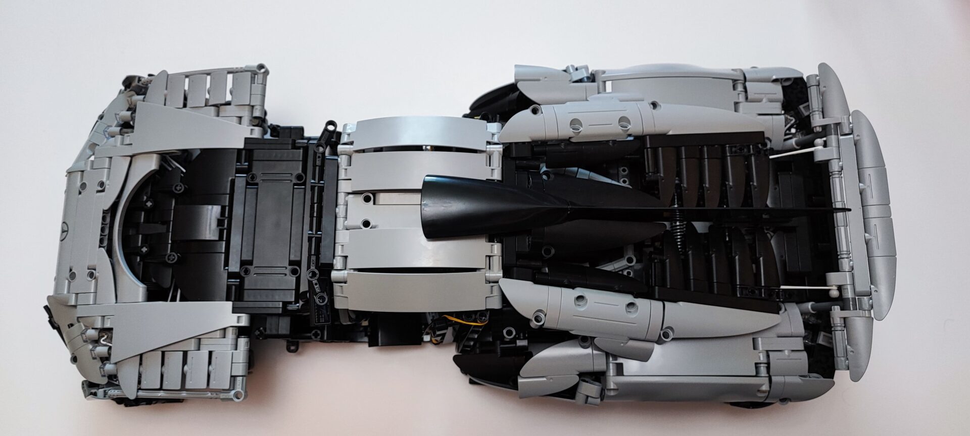 Na sam koniec recenzji chciałbym poruszyć temat elektroniki w tym zestawie, ponieważ firma CaDA reklamuje go jako pojazd elektryczny, którym można sterować za pomocą dołączonego pilota 2,4 GHz. Ja, i zapewne większość dorosłych fanów klocków konstrukcyjnych, jestem kolekcjonerem. Buduję i odstawiam pojazd do gabloty, aby podziwiać jego konstrukcję. Jednak rozumiem, że niektórzy mają dzieci, albo młodsze rodzeństwo, które chciałoby się pobawić takim modelem. W przypadku CaDA Master Mercedes AMG One może być to trudne, gdyż wykorzystane silniki są za słabe, aby komfortowo jeździć modelem po podłodze. Jak już wspomniałem nie raz, pojazd ten ważny 6 kg. To dużo i bez mocnych silników wprawienie go w komfortowy ruch jest bardzo trudne.