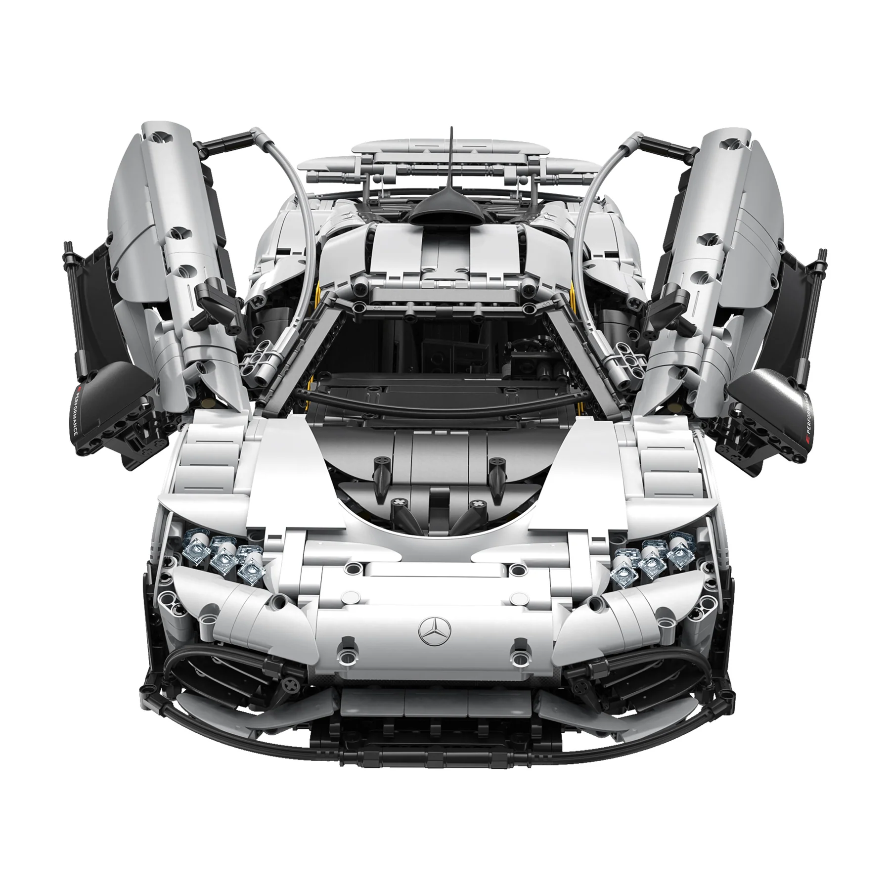Dołączone silniki to standardowa konstrukcja przeznaczona do znacznie mniejszych i lżejszych modeli. Mercedes AMG One oczywiście przemieszcza się po podłodze, ale widać, jak dużą trudność sprawia to zamontowanym silniczkom. Na szczęście elektroniczne podnoszenie drzwi oraz tylnego spoilera, czy światła działają bez zarzutu. Drzwi możemy unieść i opuścić w dowolnym momencie, jednak światła działają tylko, gdy pojazd jest w ruchu.