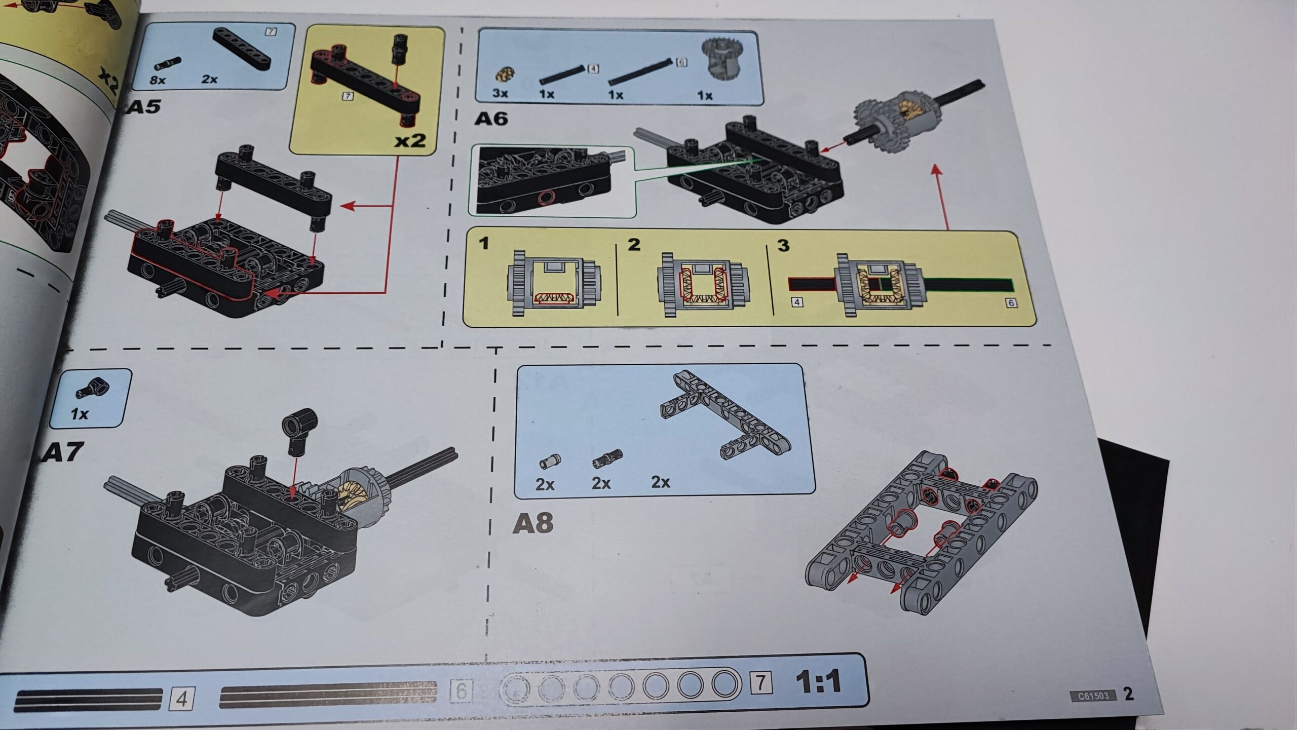 W tym pudełku znajdziemy też woreczki z numerem 1, z których zbudujemy tylą oś oraz silnik V6.