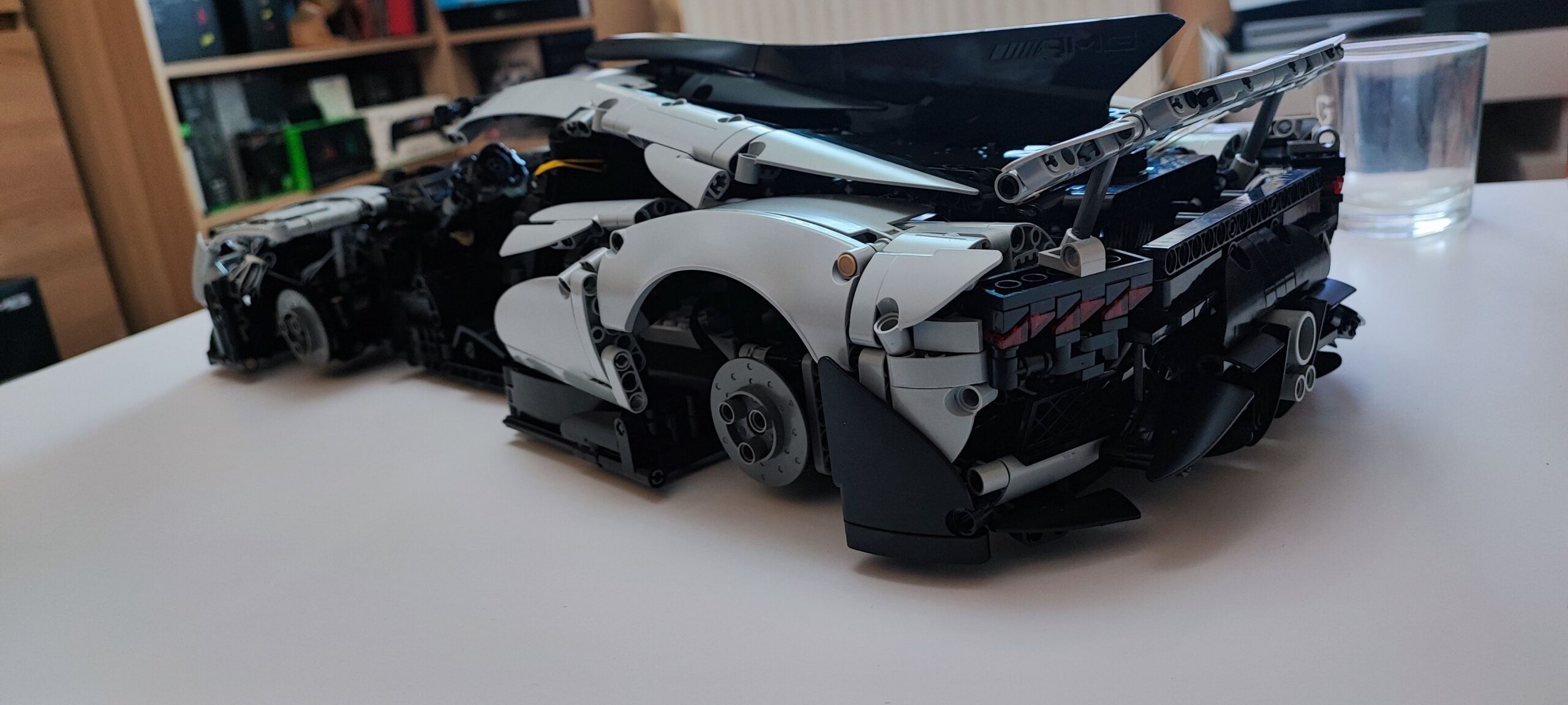 Samo nowe servo silnika potrafi kosztować 59 zł, natomiast koszt jednego z czterech silniczków elektrycznych do napędzania kół to 39 zł. Za samą elektronikę w tym zestawie wychodzi dobre 200-250 zł. Jeżeli obniżymy cenę klocków do 800 zł bez silników, to za jeden element wyjdzie nam 24 grosze. Na poniższym obrazku możecie zobaczyć porównanie AMG One od CaDA z moim największym modelem od LEGO Technic — PEUGEOT 9X8 24H Le Mans Hybrid Hypercar (1775 klocków).
