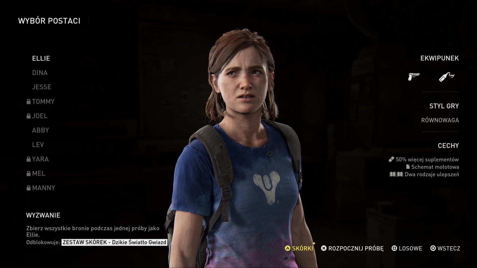 Czas teraz na największą nowość, czyli tryb przetrwania w formie rozgrywki roguelike nazwany “Bez powrotu”. Śmierć bohatera lub bohaterki w tym trybie jest ostateczna, a zdobyte przedmioty, bronie i ulepszenia są resetowane. Na początku do wyboru mamy tylko nasze dwie główne bohaterki, czy Ellie i Abby. Wykonując dwa wyzwania dla Ellie, odblokujemy Dinę, a robiąc wyzwania dla Abby, odblokujemy Leva. Następnie, grając Diną, odblokujemy Jesse’go, itd. Wszystkich bohaterów i bohaterek, których możemy użyć w tym trybie jest razem dziesięć — są to najważniejsze postaci dla fabuły w TLOU Part II.