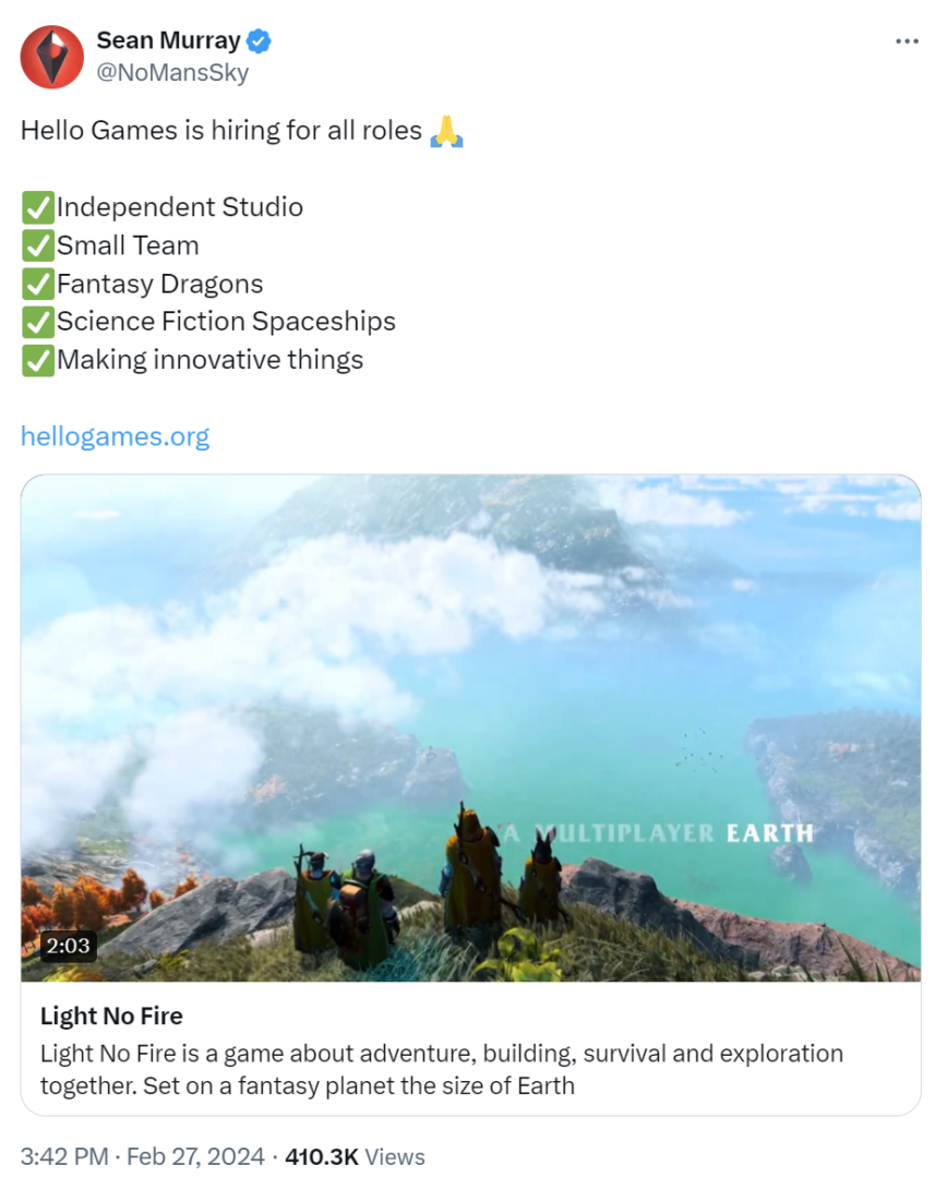 Z drugiej strony, Larian Studios i Hello Games szukają nowych talentów do swoich biur.