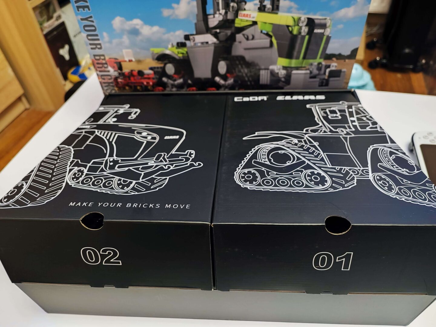 CaDA CLAAS XERION 5000 TRAC TS C65012W przychodzi w dużym kolorowym pudełku o wymiarach 42 cm x 34 cm x 9 cm. Na jednym z większych boków znajdziemy laminowany obrazek traktora. Natomiast kultywator umieszczono po drugiej stronie wraz z elementami, które możemy wprawić w ruch. W środku znajdziemy dwa duże kartonowe pudelka, w których ukryto zapakowane klocki wraz z instrukcją. W pierwszym pudełku znajdziemy woreczki z numerem jeden, dwie książeczki z obrazkową instrukcją oraz kilka naklejek. Drugie pudełko zawiera woreczki z klockami numer 2 i 3. Wszystko w tym zestawie zostało solidnie zapakowane i nie ma szans, aby coś się uszkodziło w trakcie transportu.
