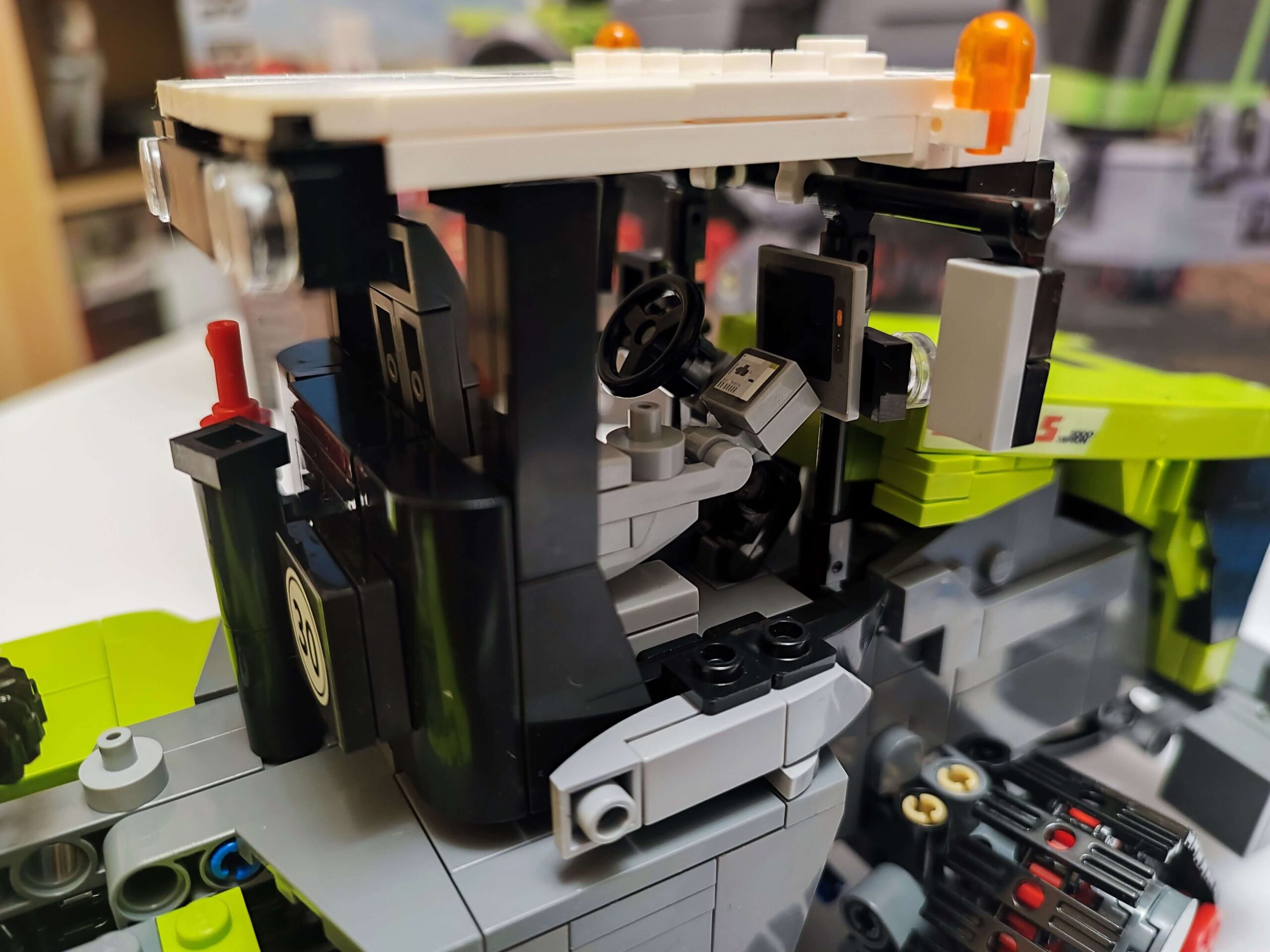Budowanie nadwozia zaczyna się od stworzenia kabiny kierowcy, w której znajdziemy oczywiście fotel z kierownicą, joystickiem oraz dwoma wyświetlaczami. Są nawet pedały gazy, hamulca, boczne lusterka, czy światła. Całość wygląda naprawdę fajnie.