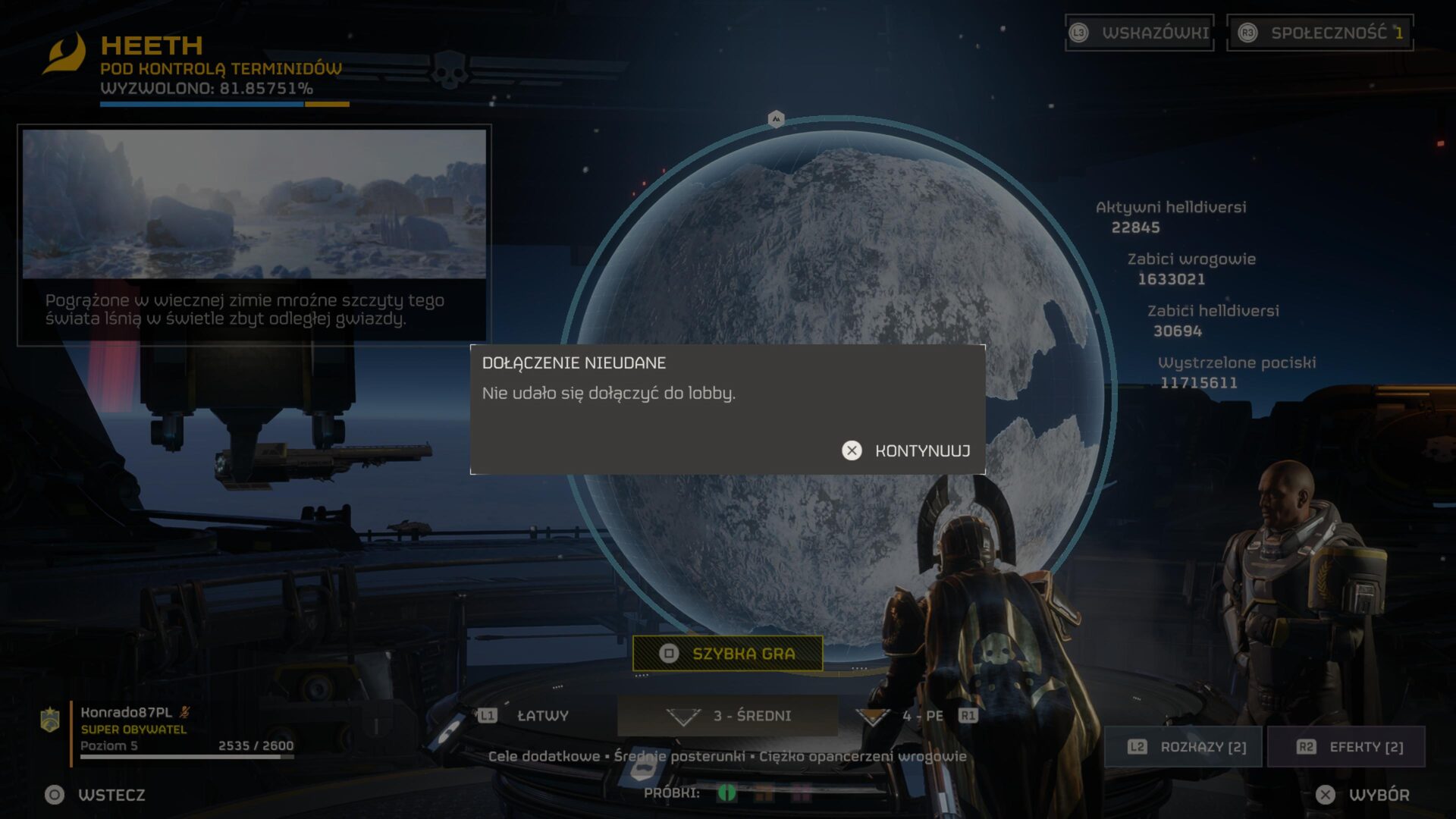 Arrowhead Game Studios z pewnością nie można odmówić ciekawego pomysłu na sieciową strzelankę. W końcu 300 tysięcy jednocześnie grających ludzi na Steamie w drugi weekend po premierze robi wrażenie. Pytanie, jak długo się to utrzyma w grze bez fabuły? Gracze cały czas robią to samo; wybierają misje, lądują na planecie, zabijają robale lub roboty, wracają na statek. Kupują ulepszenia i znowu lecą robić jedną z losowych misji. W końcu każdy zatrzyma się na jakiejś ścianie. Ja po tygodniu grania powoli mam dosyć, widziałem i zdobyłem niemal wszystko. Troszkę zacząłem się czuć, jak bym grał w Destiny 2 same losowe nocne szturmy.
