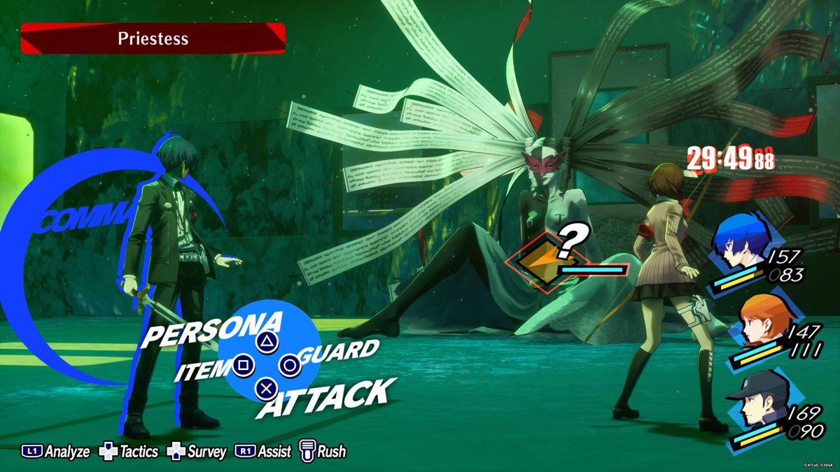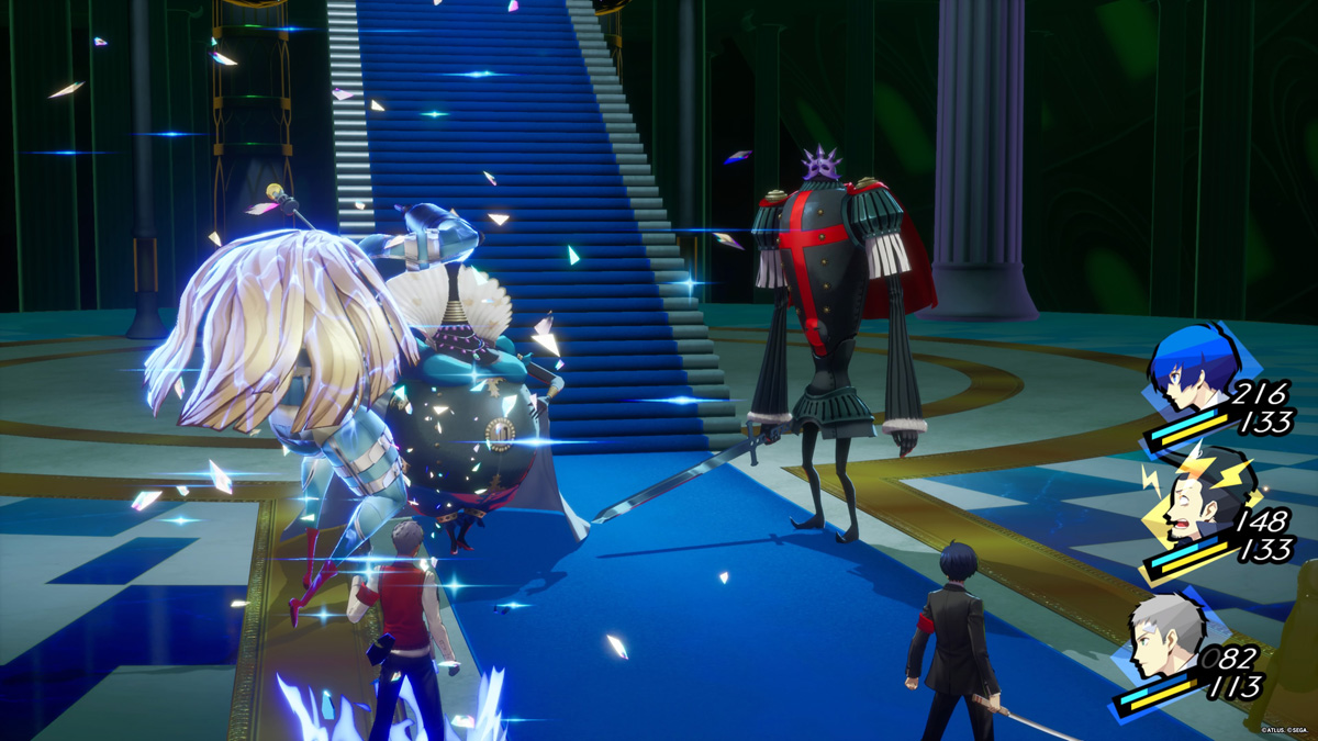 Brzmi to prosto w teorii, jednak elementów jest na tyle dużo, że odkrycie słabości czasem chwilę trwa. Tu jednak z pomocą przychodzi intuicja, a nawet kolory masek poszczególnych cieni, które często dają podpowiedzi co do odporności. Świetnym systemem okazuje się też przekazanie ruchu przyjacielowi po powaleniu wroga, bo gra sama sugeruje kto posiada odpowiednią personę do kolejnego ataku. Dzięki takim skrótom i udogodnieniom starcia mimo iż turowe są niezwykle dynamiczne i widowiskowe. Atlus zawsze przykładał dużą wagę do szczegółów i nawet wszelkiej maści menusy zostały opracowane w taki sposób by pogłębiać poczucie uczestniczenia bardziej w anime niż grze mocno nastawionej na taktykę.