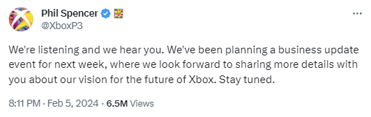 Phil Spencer napisał dziś na Twitterze, że możemy się spodziewać “biznesowej aktualizacji” w której usłyszymy o wizji Microsoftu na przyszłość Xboxa.