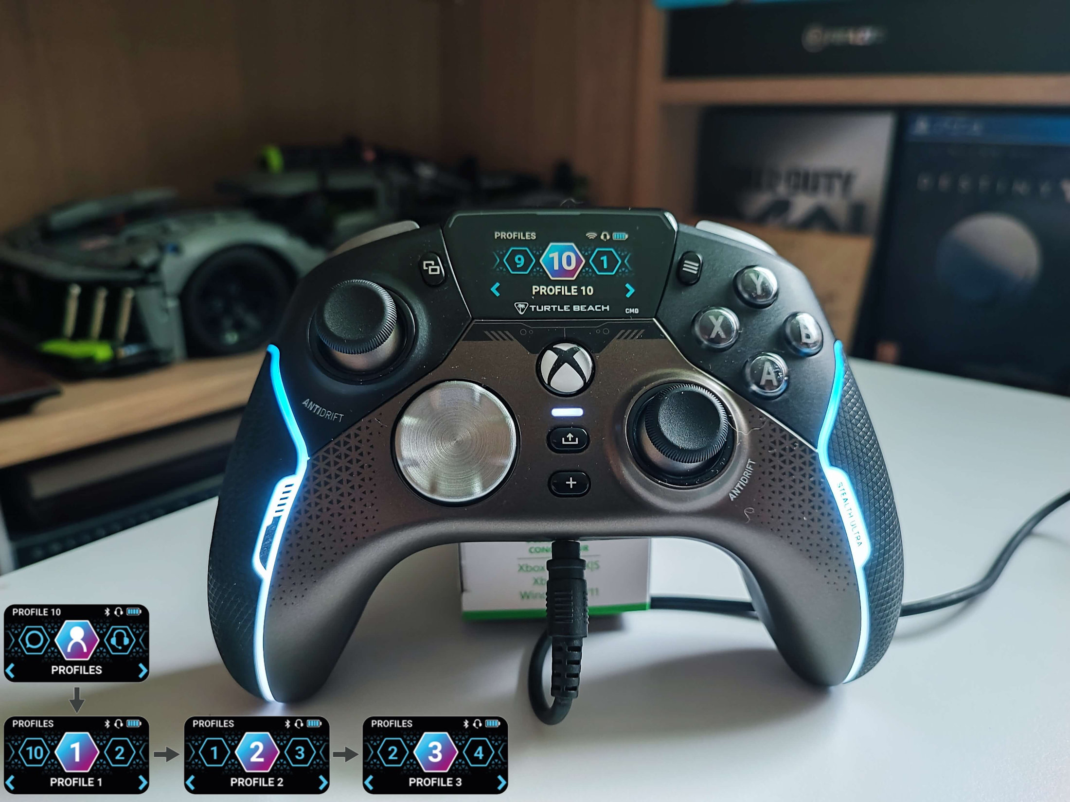 Profile do gier to z pewnością jedna z najbardziej potrzebnych funkcji każdego kontrolera. Dzięki nim szybko możemy dostosować urządzenie do konkretnych gier. Typowe pro kontrolery oferują tylko trzy profile, ale Turtle Beach Stealth Ultra może mieć ich aż… dziesięć! Wątpię, aby ktoś wykorzystał wszystkie, ale 5 -6 spokojnie da się przypisać. Szkoda tylko, że nie możemy nadać im nazwy, więc musimy po prostu zapamiętać który profil odpowiada za daną grę.