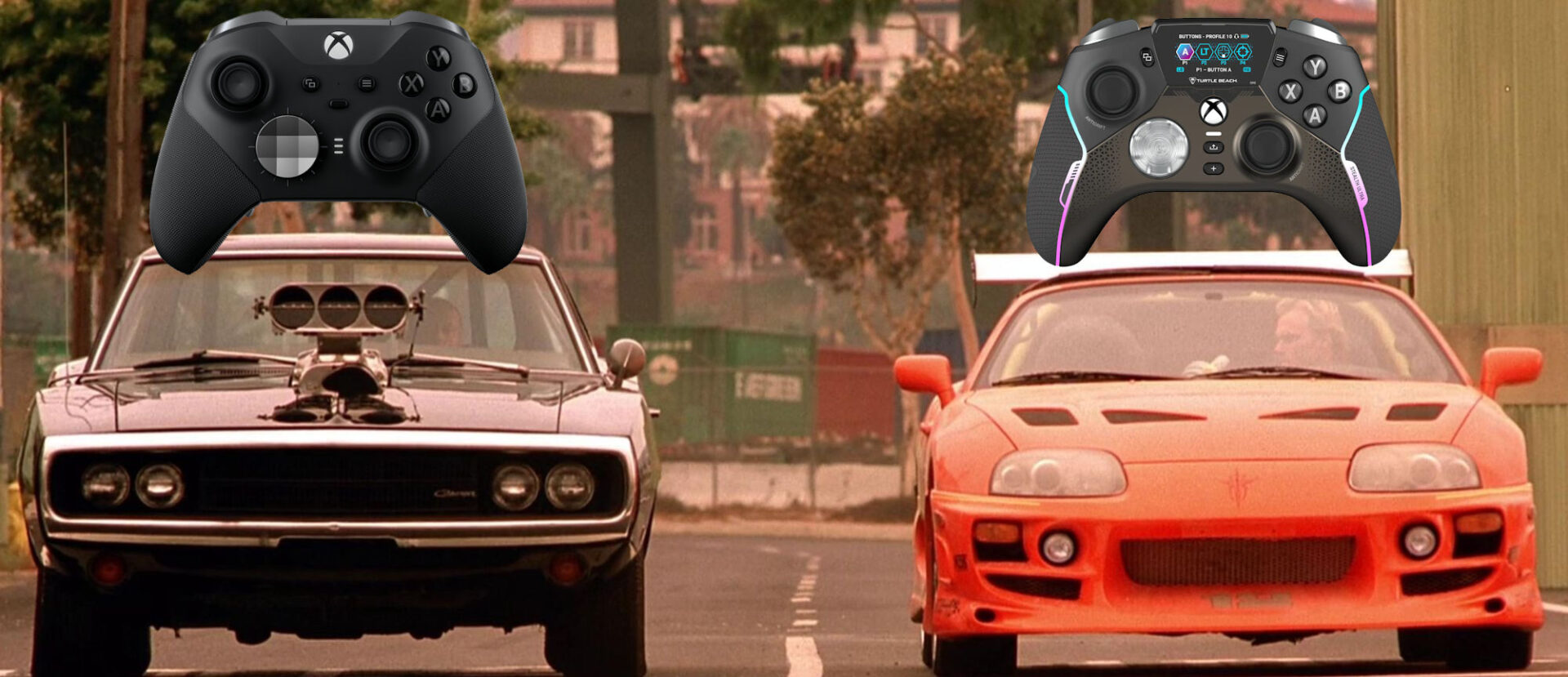 Długo się zastanawiałem, komu mógłbym polecić pro kontroler Turtle Beach Stealth Ultra i w pewnym momencie przyszło mi do głowy świetne porównanie. Z pewnością kojarzycie film „Szybcy i wściekli”. Mamy tam młodego kierowcę Briana, który preferuje japońskie kolorowe pojazdy wypełnione neonami. Jego auta napakowane są najnowocześniejszą elektroniką. Gdyby Brian miał konsolę w takim samochodzie, to z pewnościach chciałby do niej mieć kontroler Turtle Beach Stealth Ultra. Natomiast Dom Torreto preferujący stare muscle cary typu czarny Dodge Charger 1970 wybrałby kontroler Xbox Elite Series 2.