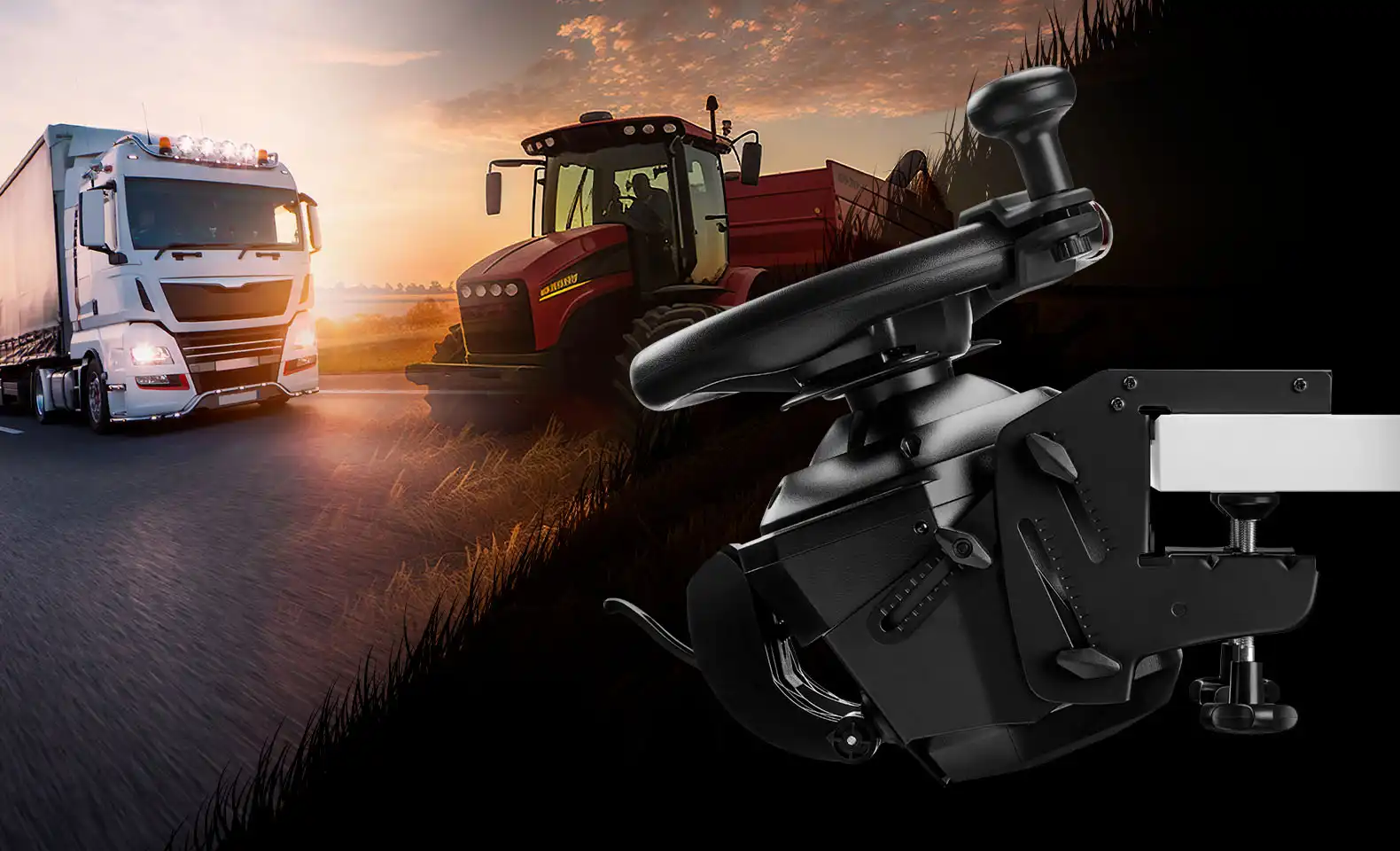 Z pakietem T128 SimTask Pack znajdziesz idealną pozycję kierowania każdym pojazdem. Ciesz się realistycznym środowiskiem symulacji typu trucking (Snowrunner) i farming dzięki połączeniu kierownicy T128 wyposażonej w siłowe sprzężenie zwrotne, zestawu pedałów T2PM i układu SimTask Steering Kit. SimTask Steering Kit to układ mocowania do biurek o grubości blatu od 15 mm do 50 mm, który umożliwia łatwe regulowanie nachylenia i wysokości kierownicy T128 bez jej demontowania czy używania narzędzi. Dzięki niemu możesz szybko przestawiać się z jednego położenia w drugie — od wyścigów samochodowych przez symulatory rolnicze po kierowanie ciężarówką.