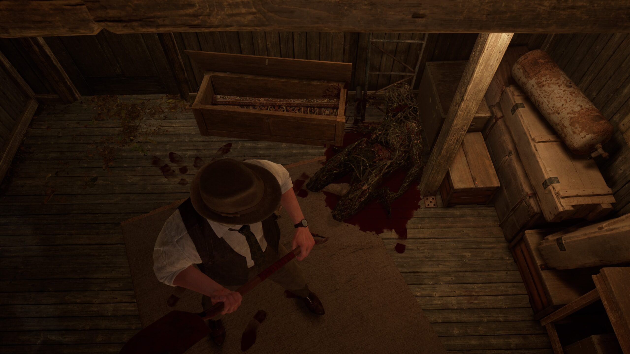 Nasi trupopodobni przeciwnicy krwawią, co jest dość… osobliwe. Ale to nic. Wiecie, że możemy zostawiać za sobą ślady krwi? O wow.