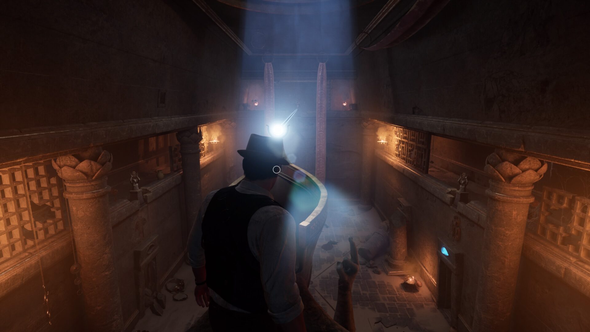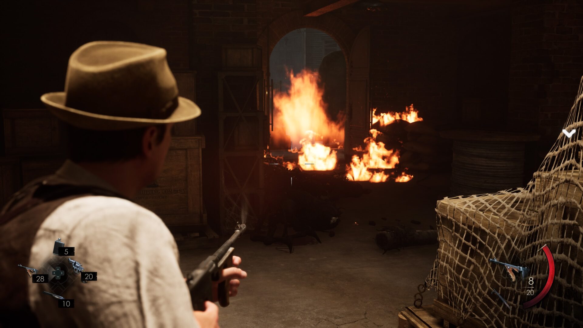 Ogień. Chociaż niestety nie strawi ledwo trzymających się na zawiasach drewnianych furtek (które musimy rozwalić bronią ręczną), to jednak zachowuje się naprawdę świetnie. Podczas jednej z łamigłówek zobaczymy, że możemy podpalić zwisające z sufitu szarfy (ups!)! Ognia możemy używać też jako broni, rzucając znalezione pełne butelki na ziemię lub ściany, a następnie strzelając w nie by je podpalić. Zrani to i spowolni zbliżających się przeciwników. Jakie to fajne! Odkąd odkryłam ten mechanizm ognia było w mojej rozgrywce o wiele więcej.