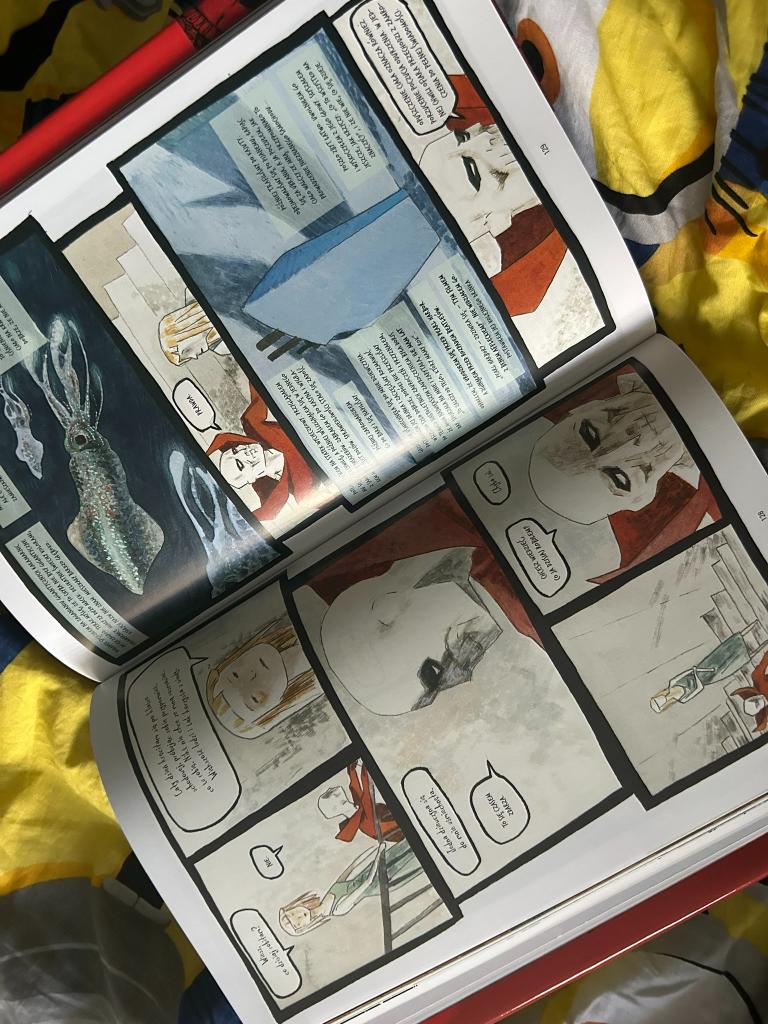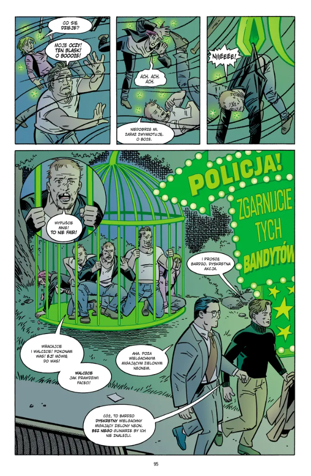 Nie mogę oczywiście zapomnieć również o klimacie, jaki płynie z każdej strony komiksu. I nie mam tutaj na myśli tylko i wyłącznie zapachu świeżej, nowej kartki. Przelane na papier historie zostały barwnie wyeksponowanie świetnie skonstruowanymi, klimatycznymi rysunkami. Z niektórych stron uderzenie horroru i abstrakcji bije po oczach, wprawiając czytelnika jednocześnie w zaskoczenie i niesamowicie mocne zainteresowanie dalszym wątkiem. Jedynym mankamentem może się chwilami okazać czcionka, jaka została wykorzystana w dialogach. Nieco za mała, momentami wydaje się rozmazana i nieco może męczyć na dłuższą metę. Czy jesteśmy w stanie wybaczyć takie uchybienie?