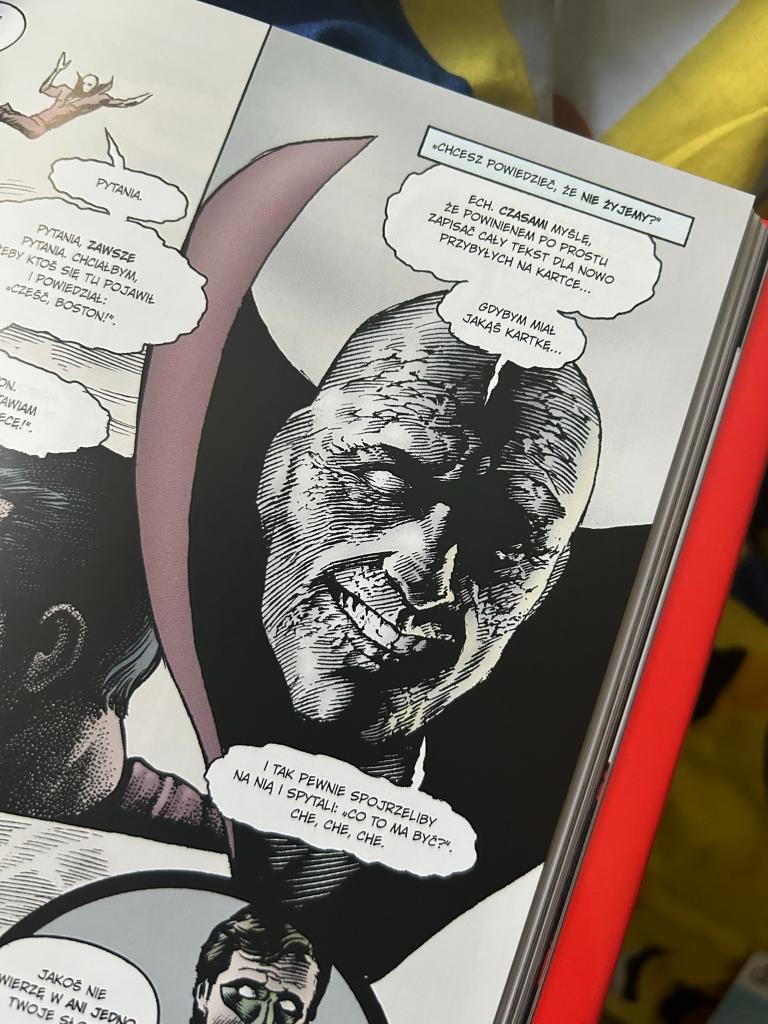 Następnie wskakujemy do Czarno biały świat, gdzie całość komiksu jest, dosłownie czarno-biała. Stanowi to ciekawą odskocznię od reszty, która naprawdę jest mocno nasycona przeróżnymi kolorami. To krótki przerywnik, który jest wysoce intrygujący. Po nim następuje Legenda o zielonym płomieniu, by przerzucić nas do krótkiej opowieści Na schodach. Na całość Uniwersum DC według Neila Gaimana składa się dokładnie 224 strony treści, rysunków, abstrakcji i akcji przedstawionej wizjami Gaimana. Takimi, które jego fani z całą pewnością pokochają.
