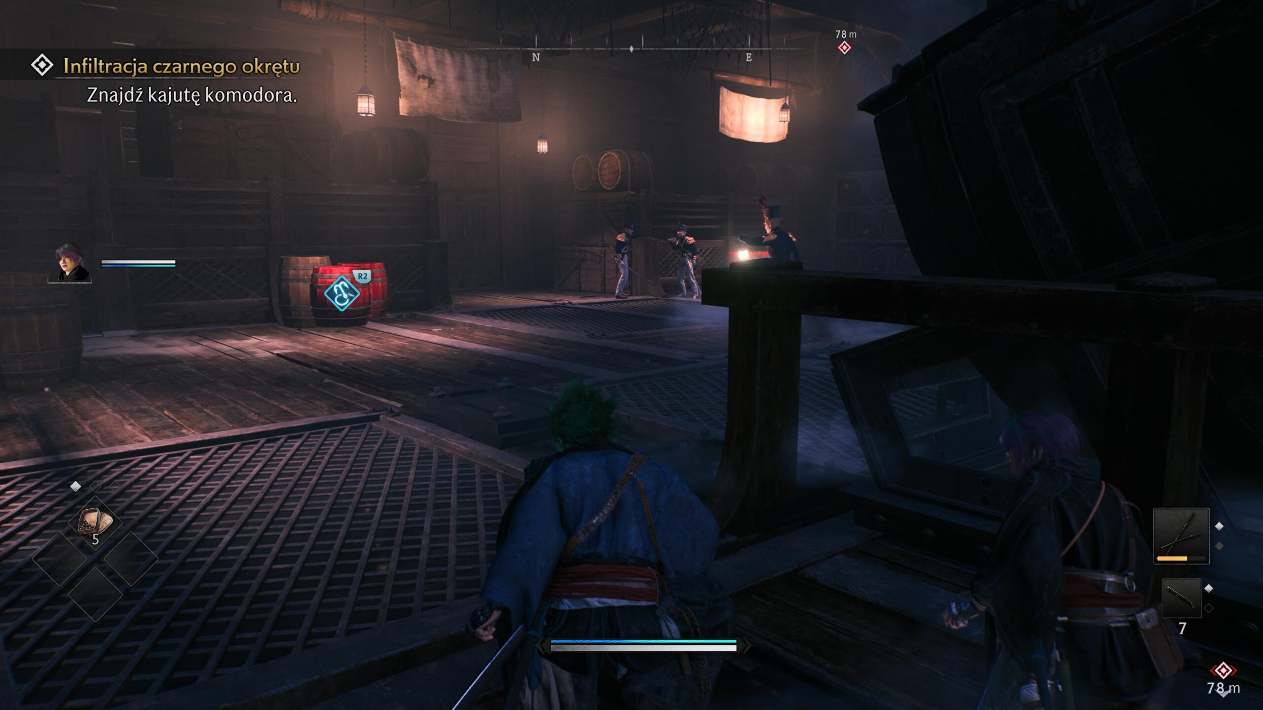 Jedną z naszych pierwszy misji jest infiltracja okrętu Matthew Perry’ego. Mamy wykraść list i ewentualnie zabić komandora. To zlecenie pełni rolę samouczka. Nauczymy się m.in. cichej eliminacji, blokowania czy odbijania ciosów kontrbłyskiem. Jest to technika, która będzie nam towarzyszyć przez całą rozgrywkę. Najprościej opisując, jest to idealna kontra, która na chwilę ogłusza przeciwnika. W momencie zamachu bądź strzału naciskamy trójkąt, aby odbić i zneutralizować atak oponenta. Rise of the Ronin z pewnością spodoba się fanom skradania. Zwykłych przeciwników eliminujemy błyskawicznie, natomiast silniejszych, podobnie jak w serii Assassin’s Creed, mocno osłabiamy.