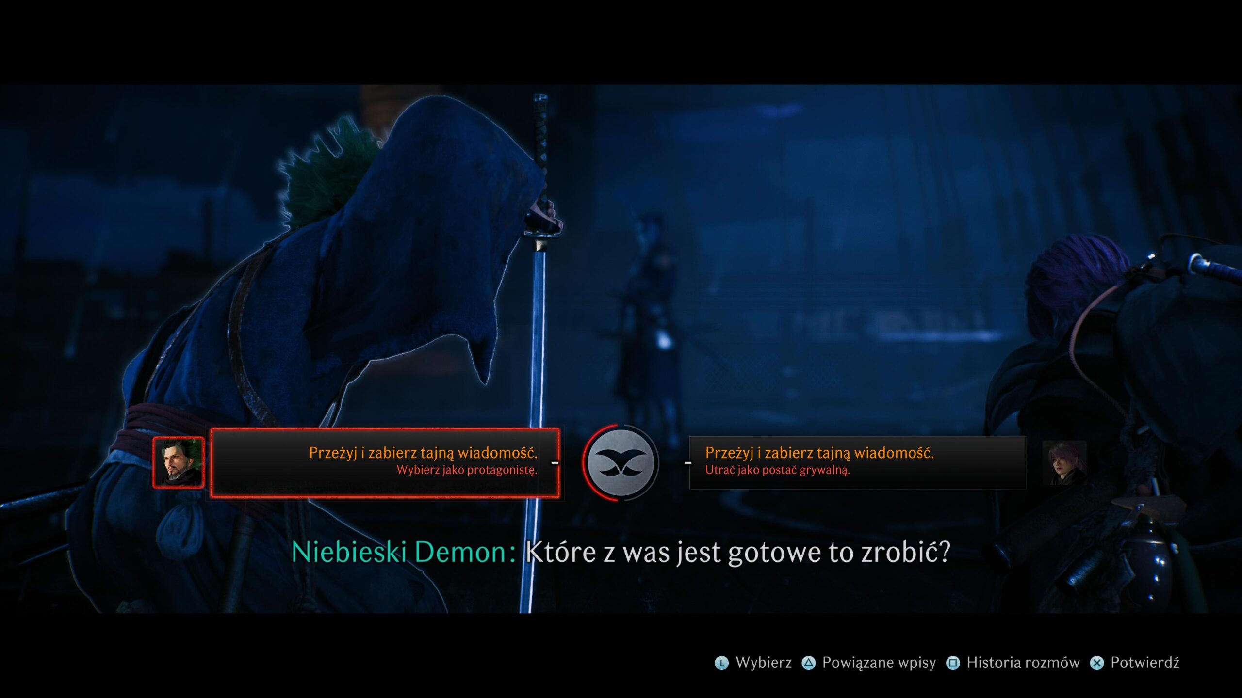 Niedużym ułatwieniem w starciach może być to, że od momentu przybycia do Jokohamy na każdą misję fabularną możemy zabrać od jednego do dwóch sojuszników. Oczywiście wcześniej musimy ich „odkryć” w świecie gry i przykładowo nie zabić w walce. Jak już wspomniałem, gra oferuje wybory moralne. W związku z tym niektórych przeciwników możemy oszczędzić i wejść z nimi w sojusz. Co ciekawe, gracz nie jest tylko ograniczony do swojej postaci i może przełączać się między trójką wojowników. Wystarczy wciskać krzyżak w górę lub w dół wraz z L1. Gracz uczy nas tej techniki już w pierwszej misji, kiedy możemy przełączać się między Bliźniakami w trakcie infiltracji okrętu. Gdy jeden z naszych sojuszników zostanie pokonany, to gra szybko przełączy sterowanie na inną postać. Powalonego wojownika możemy reanimować, naciskając R1. Tracimy jednak wtedy jedną z pigułek do odnawiana zdrowia — maksymalnie możemy ich mieć osiem. Walka kończy się w momencie, gdy cała trójka wojowników polegnie. Na szczęście nie musimy zaczynać całej misji od nowa, tylko startujemy z ostatniego odwiedzonego punktu kontrolnego. Zazwyczaj jest on tuż przed walką z bossem.
