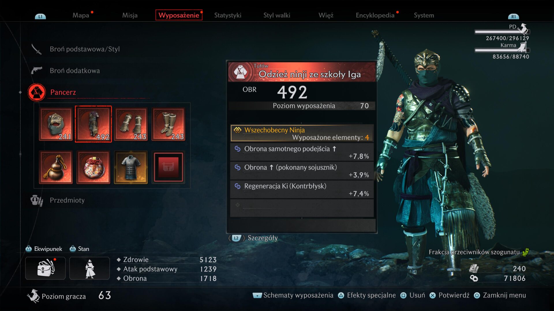 W Rise of the Ronin naszymi przeciwnikami są tylko ludzie, nie spotkamy tu żadnej postaci fantasy rodem z NiOH. Jest to w pewnym sensie ułatwienie dla mniej doświadczonych graczy, gdyż możemy robić uniki, czekać na silniejszy atak przeciwnika, który skontrujemy kontrbłyskiem i zadamy ogłuszonej na chwilę postaci większe obrażenia. Niestety twórcy przewidzieli, że tak może wyglądać cała rozgrywka, więc uniemożliwili graczom normalne ulepszania paska ze staminą. Za pomocą punktów umiejętności możemy zwiększyć sobie zdrowie, obronę, czy obrażenia, ale pasek staminy jest niemal stały. Tylko nieznacznie rośnie wraz z kolejny poziomami gracza. Wyczerpany pasek staminy sprawia, że nasza postać przez chwilę nie może się ruszać, a zaatakowana w tym czasie otrzymuje niemal śmiertelne obrażenia.