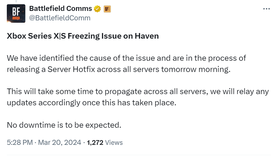 Sezon 7 Battlefielda był przez graczy długo wyczekiwany. Po prawie trzech sześciu miesiącach od startu poprzedniego sezonu, nareszcie mamy jakieś nowości. Posiadacze konsol Xbox muszą się jednak na razie obejść smakiem. Bug w grze sprawia, że Haven, nowa mapa, zawiesza się na konsolach Xbox Series. Łatka pojawi się najwcześniej dopiero jutro.