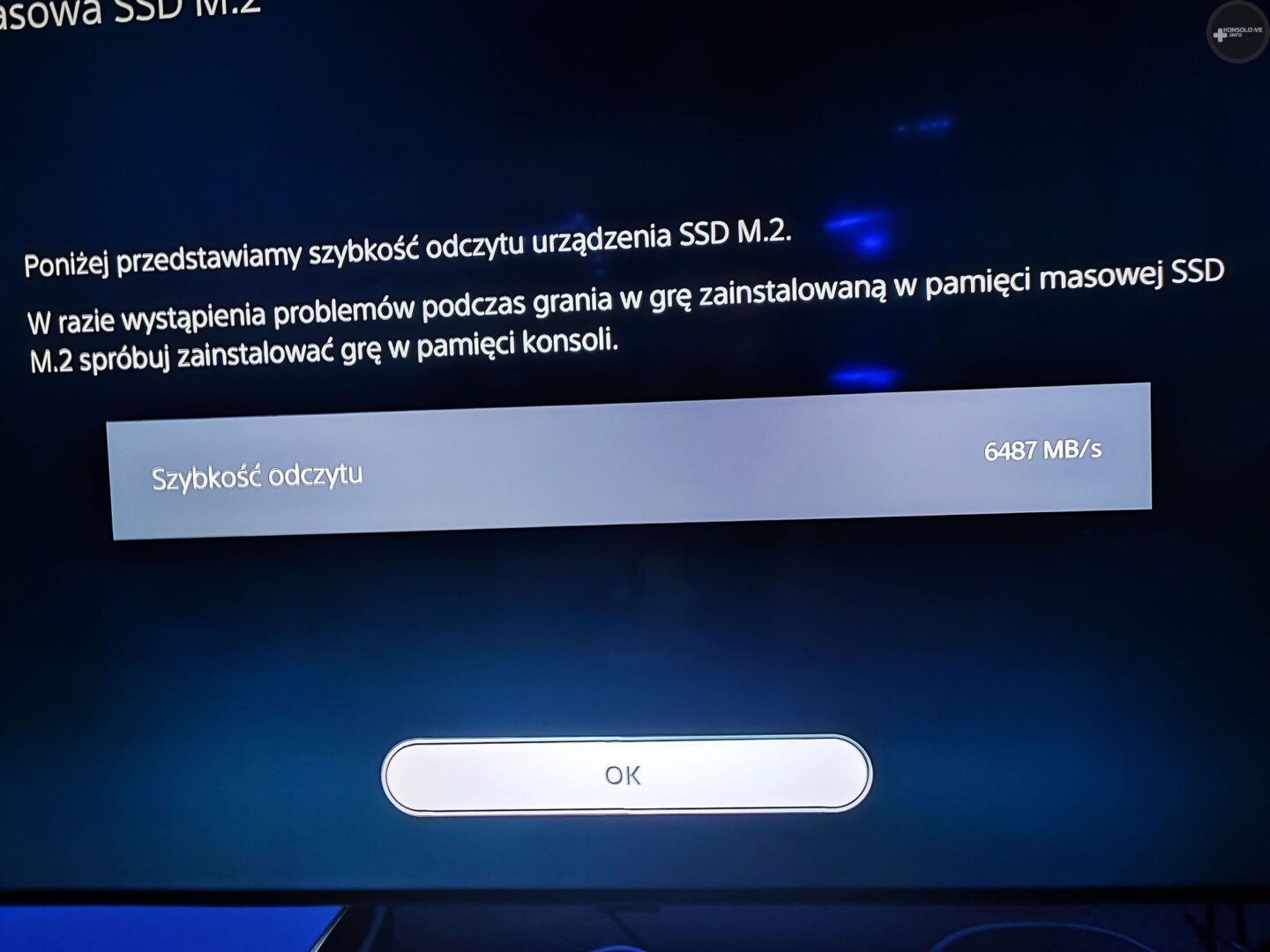 Dysk montujemy oczywiście w wyłączonej konsoli; całkowicie odłączonej od prądu. Jak możecie zobaczyć na naszym nagraniu, montaż dysku jest banalnie prosty. Nie ma znaczenia, czy macie konsolę PS5 z napędem BD, czy w wersji Digital. Jeżeli podłączyliśmy dysk prawidłowo, to po uruchomieniu powinniśmy zobaczyć komunikat, który będzie wymagał od nas sformatowania zamontowanego dysku SSD. Formatowanie trwa kilka sekund, a po tym procesie otrzymamy komunikat o wydajności naszego dysku. Ta w testowanym dziś modelu, jak już wspomniałem, wynosi 6487 MB/s. Nowe gry bynajmniej automatycznie nie będą instalowały się na zewnętrznym dysku. Aby to zmienić, musimy udać się do ustawień pamięci masowej konsoli i tam wybrać nowe miejsce instalacji danych.