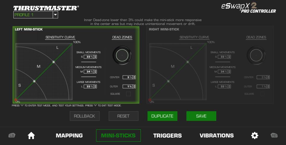 To już wyższy poziom gamingu. Jeżeli chcesz być najlepszy i jesteś w stanie poświęcić sporą ilość czasu nad konfigurowaniem pada, to trafiłeś doskonale. ThrustmapperX to aplikacja, która dodatkowo zwiększy komfort rozgrywki i pozwoli osiągnąć zamierzone efekty. Aplikacja ta jest dostępna na komputery z systemem Windows 10/11 oraz konsole Xbox One / Series z możliwością bezpośredniej instalacji. Jej możliwości są naprawdę ogromne. Dla każdego profilu ustawimy inne zakresy czułości czy po prostu układ klawiszy i będziemy mogli wymiatać w każdej produkcji, bez względu na jej typ. Bo choć eSwap X2 Pro Controller powstał głównie z myślą o bijatykach, to także poza nimi spisuje się naprawdę wyśmienicie.