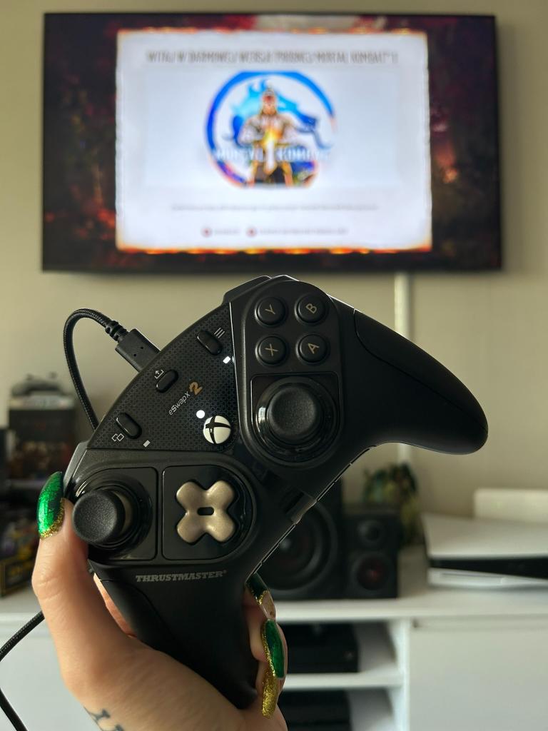 W Mortal Kombat 1 tylne przyciski sprawdziły się po prostu znakomicie. Na tyle, że mocno przywykłam do walki z ich udziałem. Po przejściu na Mortal Kombat 11 już nie było tak kolorowo, ponieważ nie działały w podobny sposób, a szkoda. Jak znajdę trochę więcej czasu, spróbuję je ustawić tak, by i w “jedenastce” wykonywać z ich pomocą solidne kombosy. Niemniej bardzo czułe analogi, błyskawiczny czas reakcji i te dodatkowe przyciski z tyłu sprawiły, że na nowo odkrywałam ulubioną bijatykę. Ba, nie przeszkadzał mi nawet długi kabel przechodzący przez połowę salonu. Walka ta jest bardzo przyjemna i na 100% w każdą kolejną zagram z Thrustmaster eSwap X2 Pro u boku.
