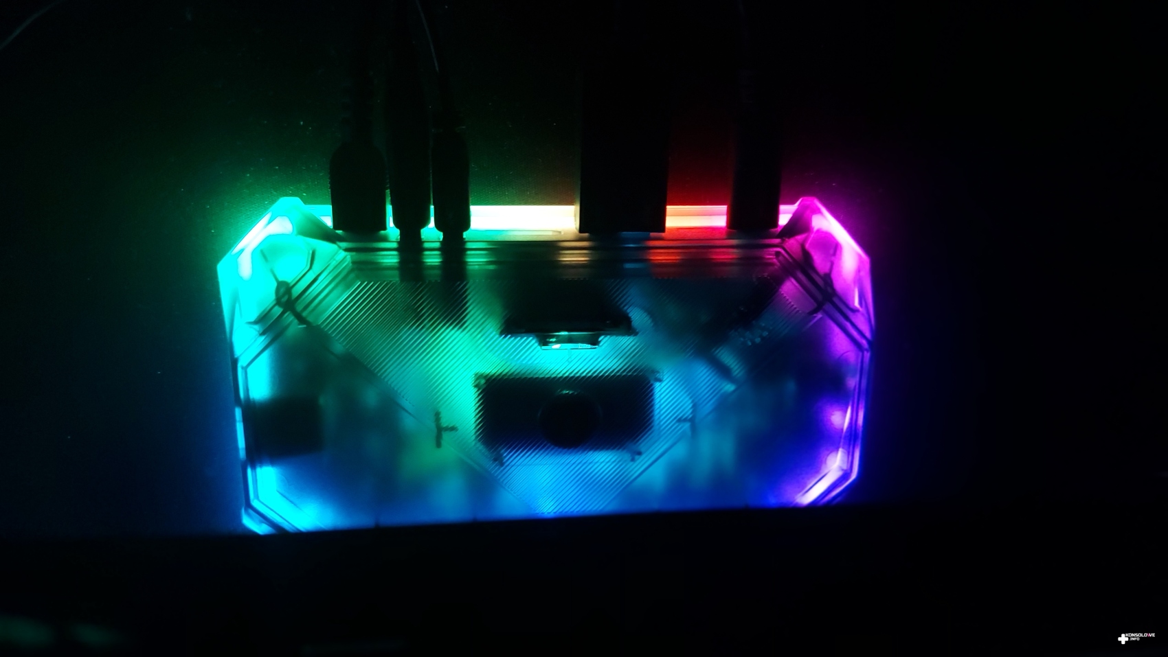 Tym, co na pewno zwraca na siebie uwagę jest podświetlenie stacji dokującej. Instalując na naszym komputerze aplikację OpenRGB, możemy dostosować nie barwę podświetlenia (z pełnej palety RGB), ale i wybrać styl przechodzenia kolorów. Podoba mi się też przezroczystość stacji – dzięki temu wszystkiemu naprawdę może się ona podobać. Warto zaznaczyć, że bez problemu obsługuje wyświetlanie w rozdzielczości 4K w 120 Hz. Uważam, że to obowiązkowy zakup dla każdego użytkownika Lenovo Legion Go. Jeżeli nie jesteście zwolennikami takiego podświetlenia, to można je wyłączyć, przytrzymując odpowiedni przycisk na górze stacji dokującej.