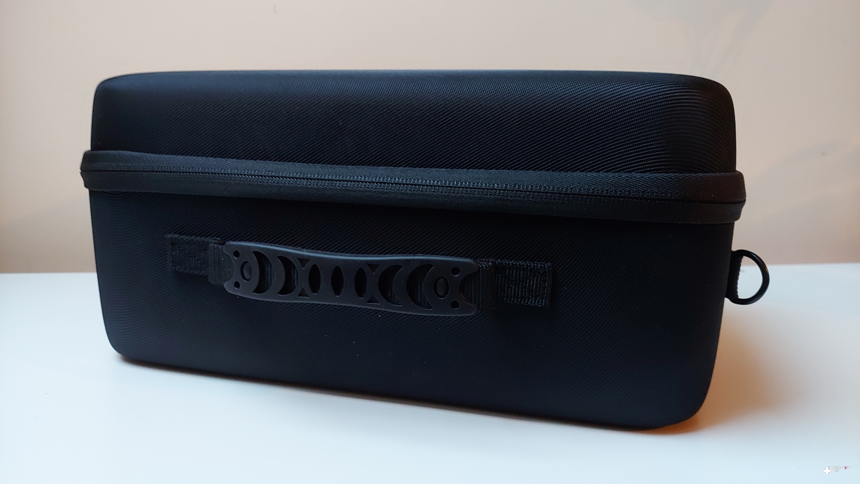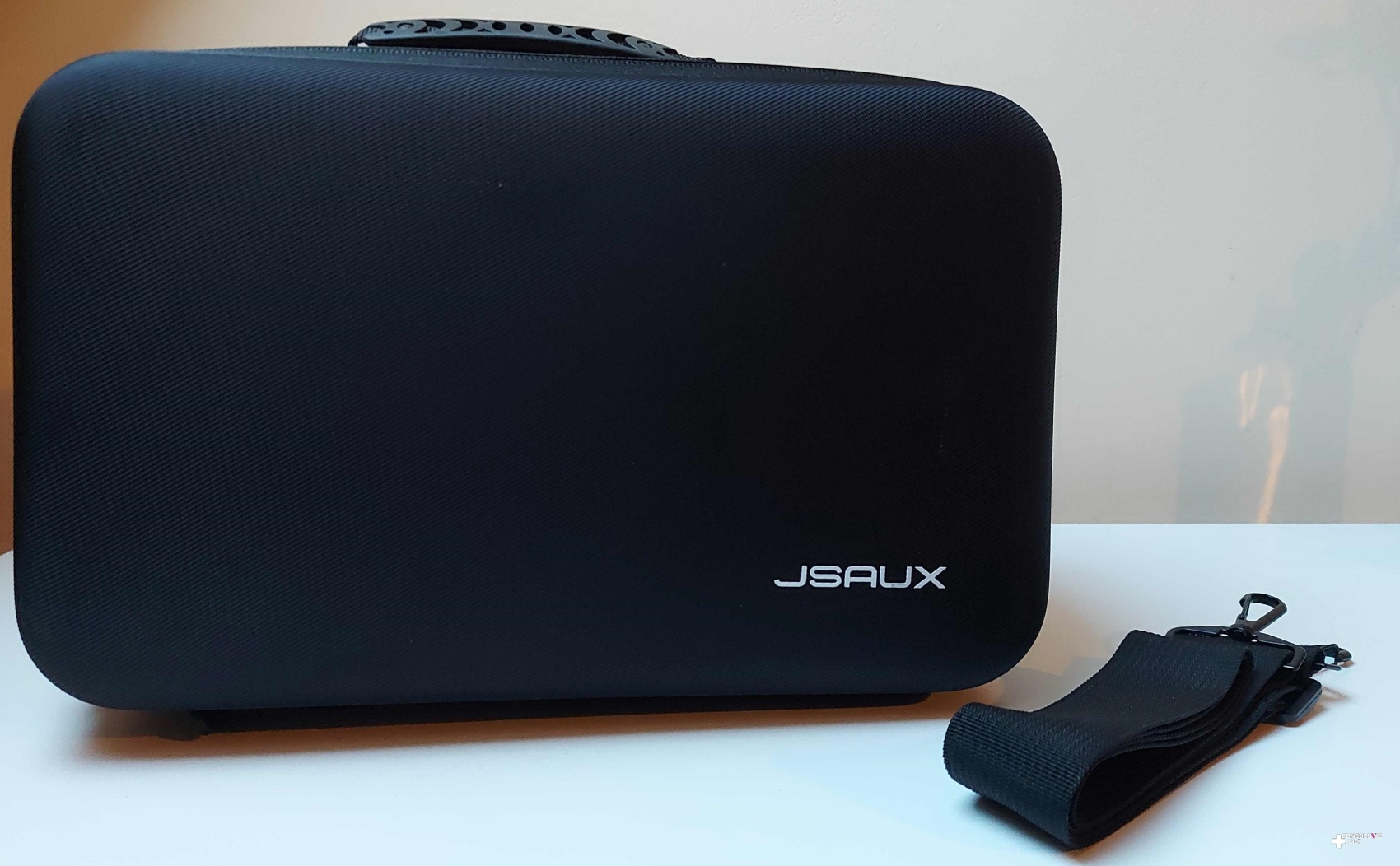 Kończąc opisywanie torby, zobaczmy, co czeka nas na zewnętrznej stronie. Znajdziemy tu prostą stylistykę – oprócz dość dyskretnej nazwy producenta (JSAUX) nie znajdziemy tu żadnych rozpraszających elementów. Dzięki temu torba jest w mojej ocenie bardzo elegancka i z powodzeniem może zastąpić torbę na laptopa. Można ją też zawiesić na ramieniu (choć warto zaznaczyć, że ostatecznie może dość sporo ważyć). Podoba mi się też zamek błyskawiczny, który wydaje się być bardzo dobrej jakości. Bez wahania wystawiam tej torbie oba odznaczenia testu Konsolowe.info.